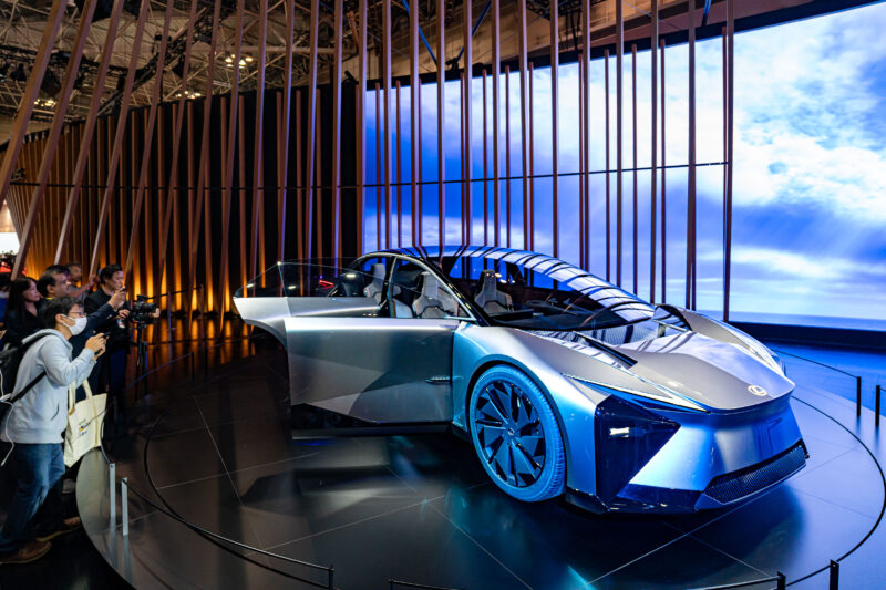 レクサス LF-ZLはEVのフラッグシップモデルらしく、客観的に見れば ”いったい世の中の何人がこんな車を買えるのか?” という疑問を持ちつつも、まあ話のネタついでに見てきました。外見はいまふうのスポーツクーペみたいな感じでしょうか。