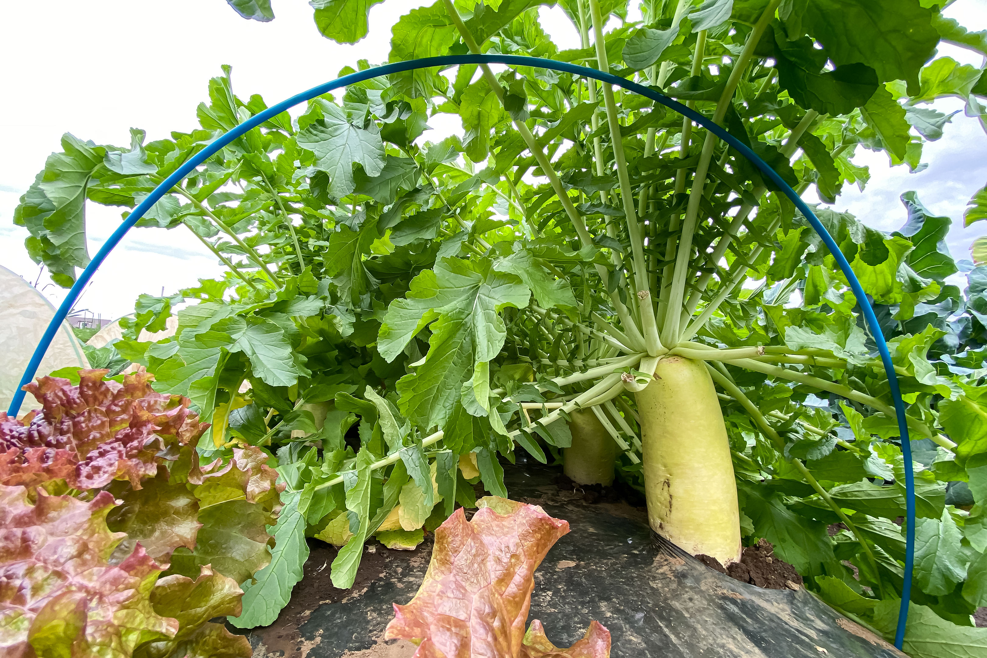 ちなみに大根はこの耐病総太り4本のほか、おふくろ大根2本、まんまるに成長する聖護院大根を2本植えており、秋の大根は3種類合計8本収穫予定です。