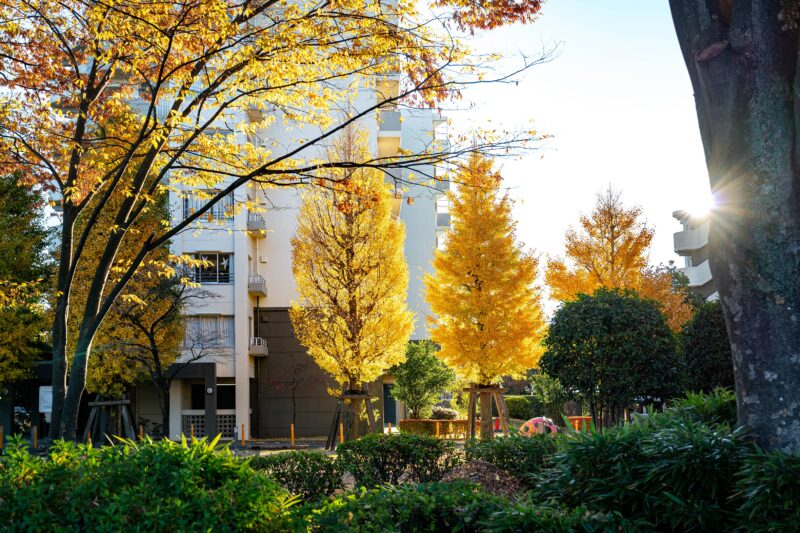 いつもより30分ほど早い出社の月曜日。我が家近所のマンション群の広場には見頃を迎えたイチョウが数本植っていて、朝日が差し込む角度がこの時間にちょうどよく美しさを放ちます。