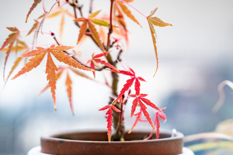 マメ盆栽ってその名の通り手のひらに載るくらいの小さなものですからベランダに置くほどの存在感はなく、比較的暖かな出窓で色づかなかったら通年緑の葉を楽しもうと割り切るつもりでいたところでしたからこの変化は大変うれしですね。