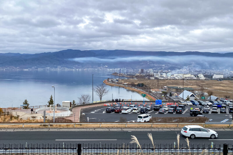諏訪湖サービスエリアからの景色。地上付近に怪しげな雲が出現していたのは、恐らく暖かい地上に急激に冷たい空気が流れ込んだ事が原因と考えられ幻想的な風景を作り出した模様。諏訪湖って近くで見ると水が汚くて褒められたものではありませんが、こうして遠くから眺めると美しい湖ですね。