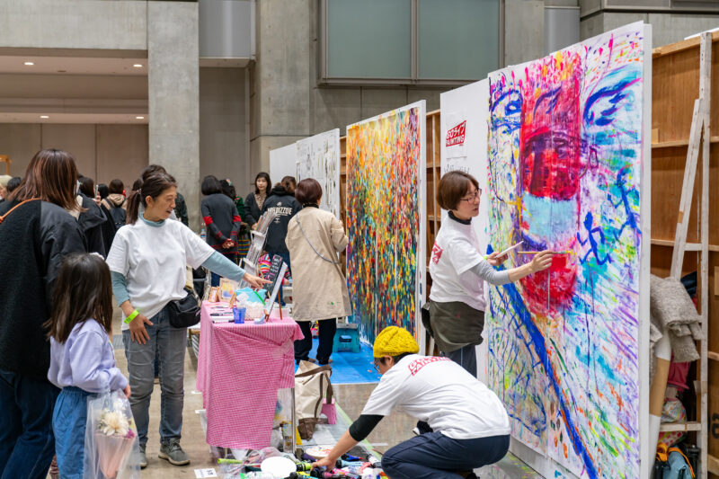 HandMade In Japan Fesならではの光景。ライブペイントコーナーは毎回このイベント開催期間中に大型キャンバスに目の前で絵を描くパフォーマンス。参加アーティストも様々なので仕上がりのベクトルもバリエーションに富んでいます。