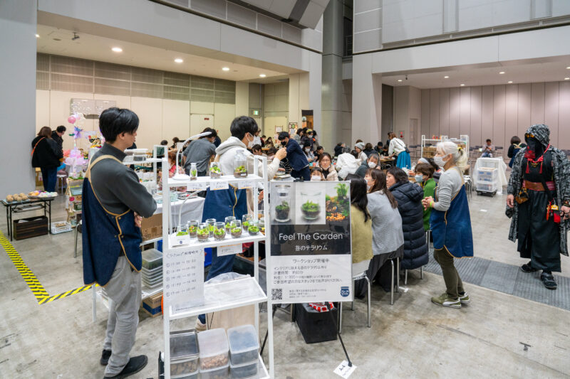 こちらは年々エリア拡大の印象が強いワークショップコーナー。毎回人気なのは苔を使ったテラリウムや、キャンドルの製作体験。席さえ空いていればきっと当日飛び入り参加もできそうな雰囲気でした。