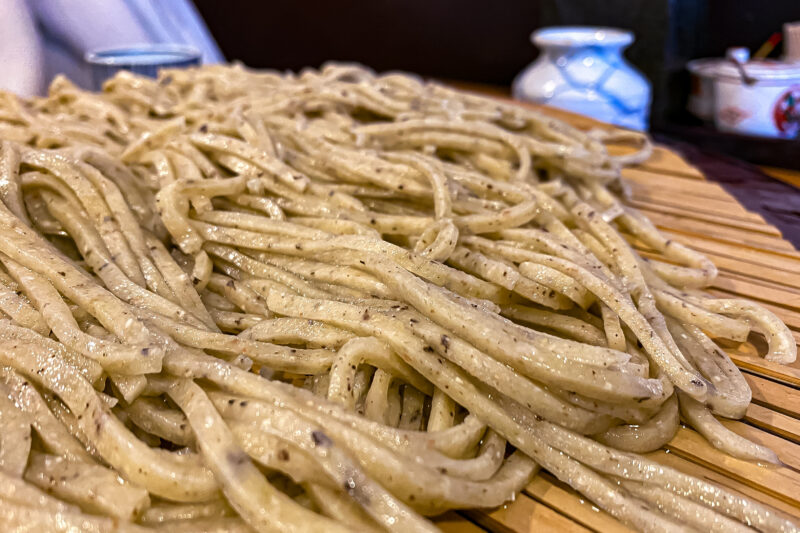 長野出身の私ですから蕎麦に関しては少々うるさいですが、ここの蕎麦は蕎麦の実を殻ごと挽いているのでしょうかね、粗挽きであることは間違い無いと思うのですが、ものすごく食感が良くコシがあります。うどんで言ったら初めて讃岐うどんを食べた時のあのコシの強さに驚く感覚が蕎麦で味わえる感じ。