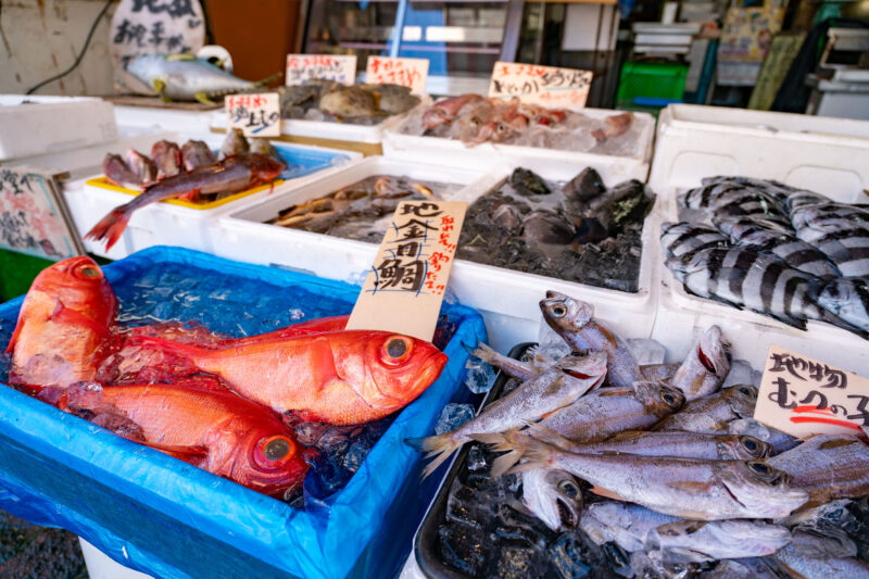 まるいち食堂は店頭で新鮮な魚も販売しています。長野育ちの私は見たこともないような種類の魚の取り扱いもありますが、それゆえ好きな人はこの中から好きな魚を選びその場で捌いてもらって定食にしてもらう...そんな食べ方も楽しめるようです。
