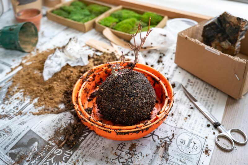 苔には肥料は必要なし! むしろ肥料を与えると枯れてしまうとも言われています。だから時々霧吹きで水を与えるだけでOK。しかし組み合わせたモミジに関してはそうもいきません。最低限の肥料は必要ですし比較的水分の多い環境を好むと言われています。