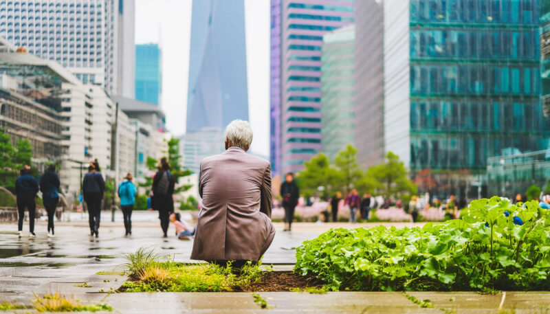 会社近くのコンクリートで囲まれた無機質なエントランス広場の片隅に背を丸くして屈む外国人の姿がありました。