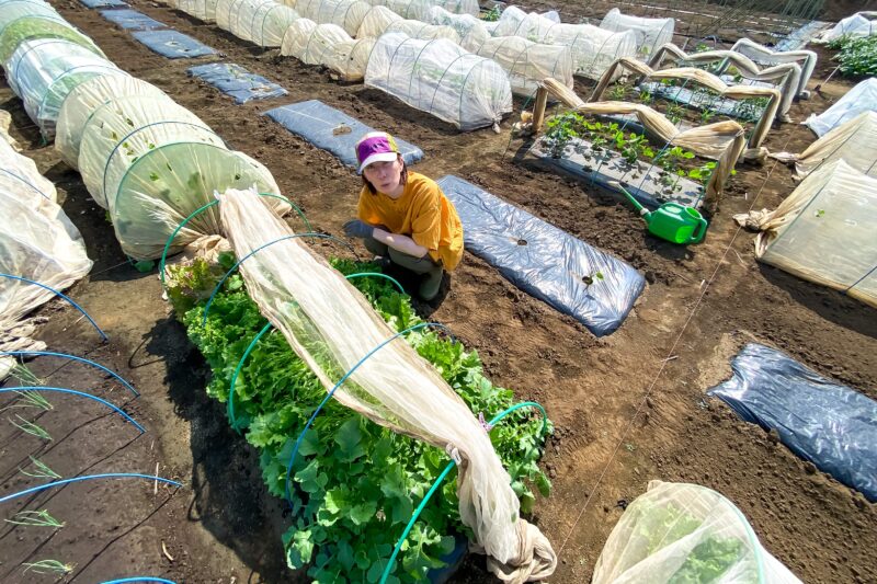 ビニールトンネルによって風から守られていた苗をこうして風に当てることで丈夫にし、その中でも1番強そうな苗を残してその他を間引き対象とする...。ある意味耐性判断を兼ねた観察期間ですね。