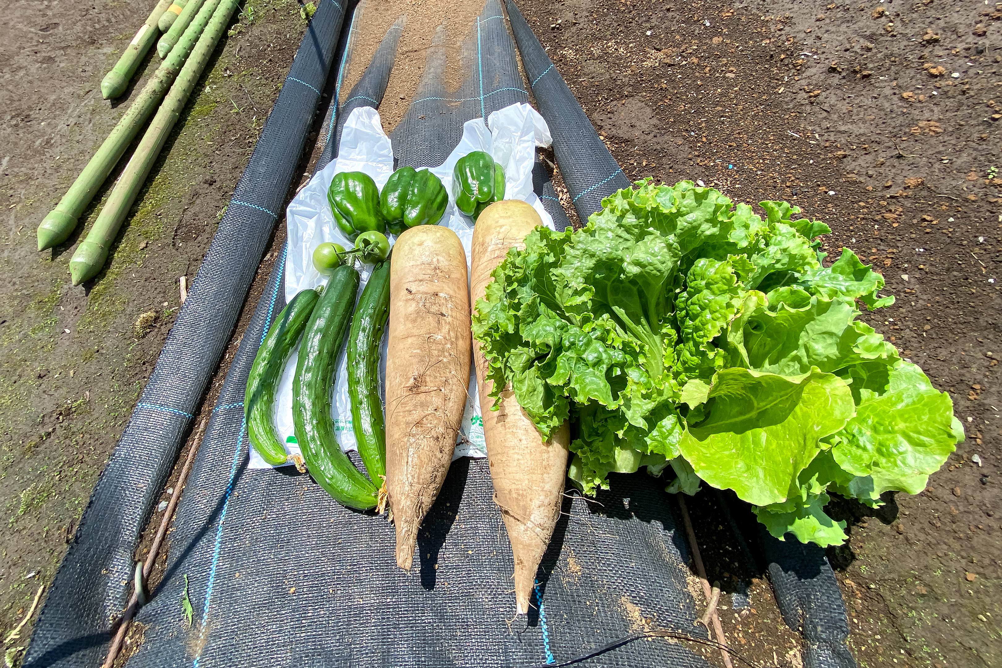 5.大根、レタス、きゅうり、ピーマンの収穫