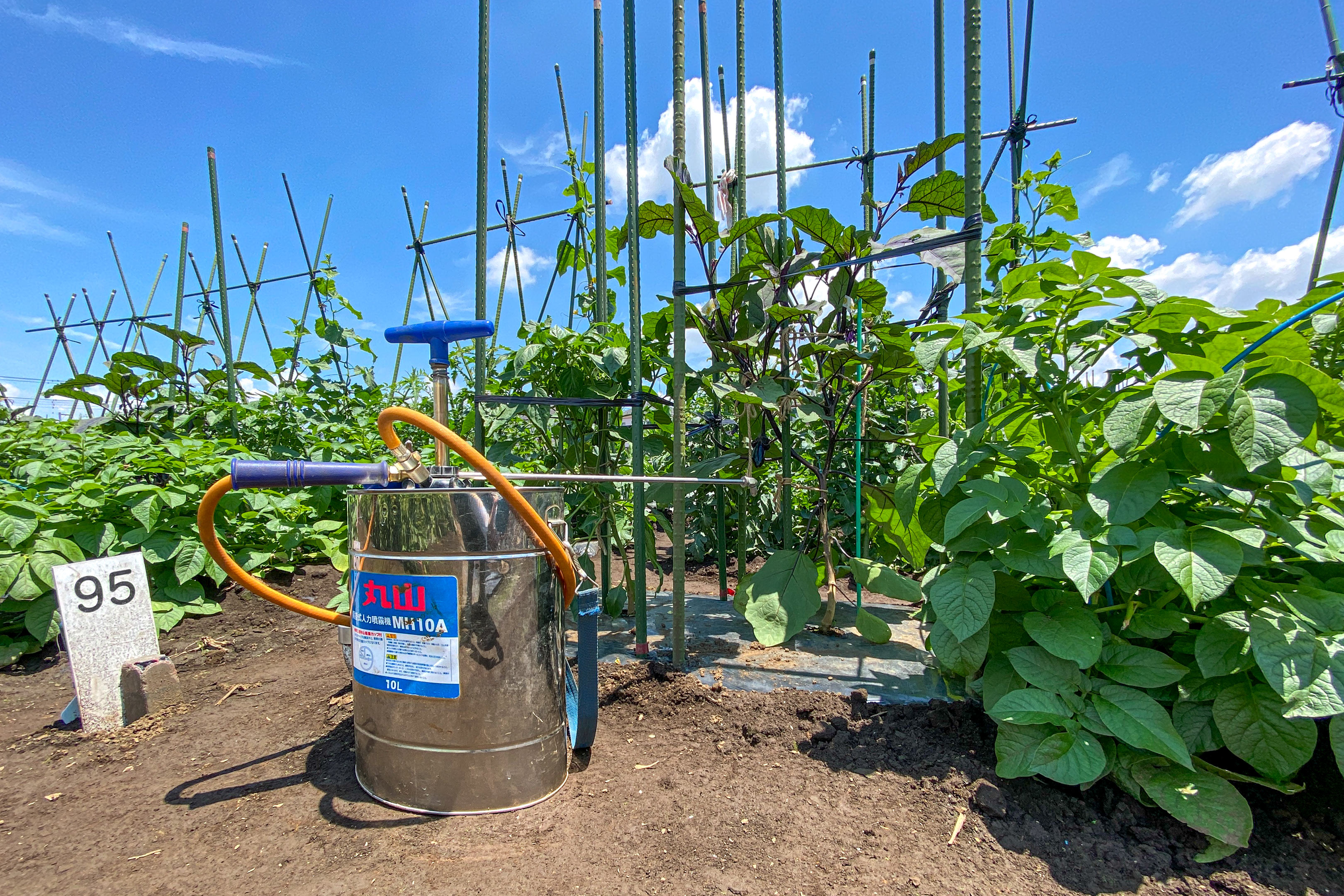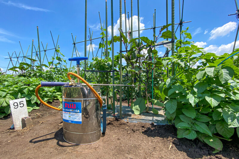 6.農薬散布(殺虫剤:ナス、ピーマン、トマト、きゅうり、とうもろこし、枝豆、ネギ、ポップコーン)