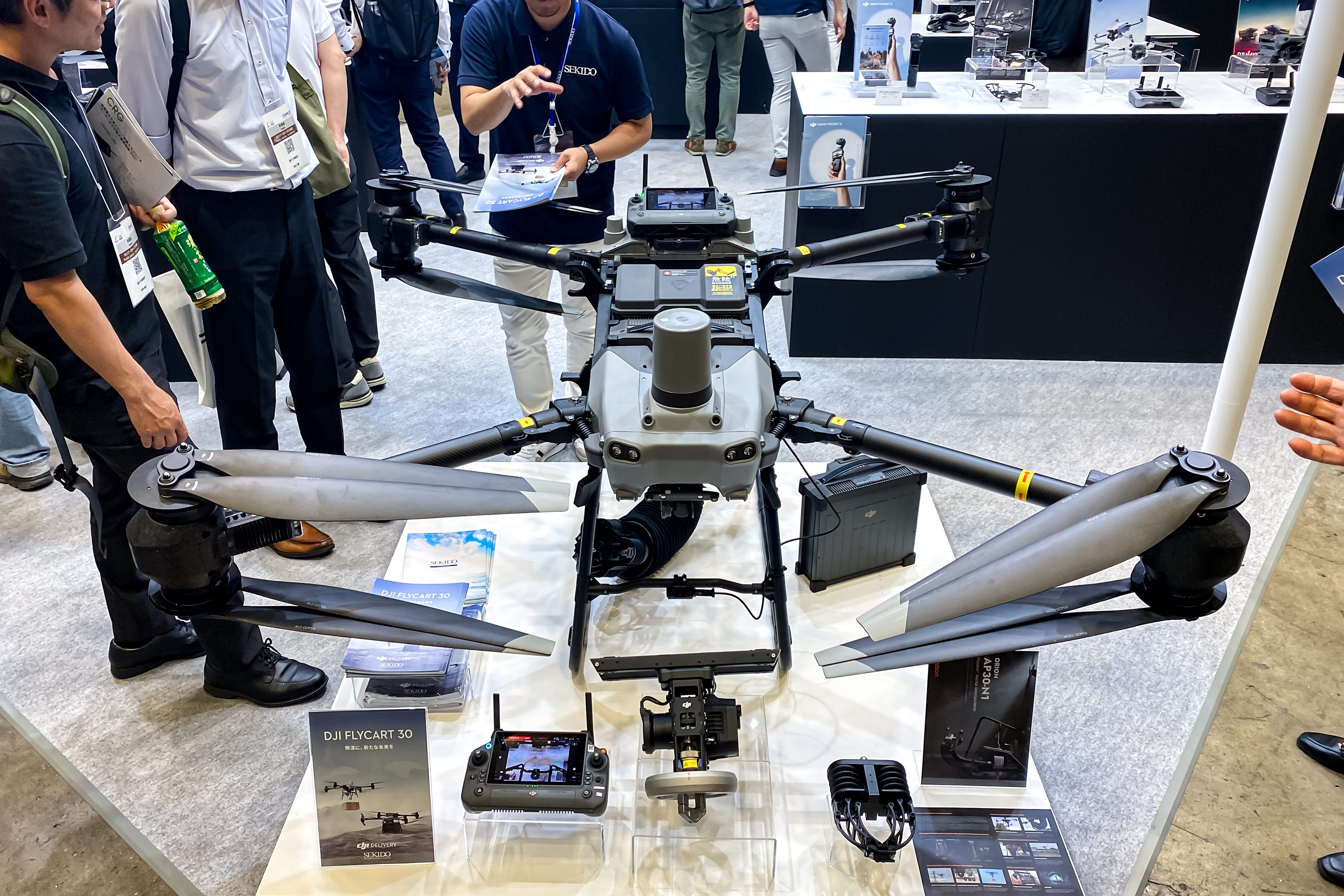 その点中国は動きが早いですね。今回展示されていたDJI FLYCART30はペイロード30kg、最大積載時飛行距離16km、伝送距離20km、これで時速72km/hで飛ぶというのですから海外の常識は変わりつつあります。