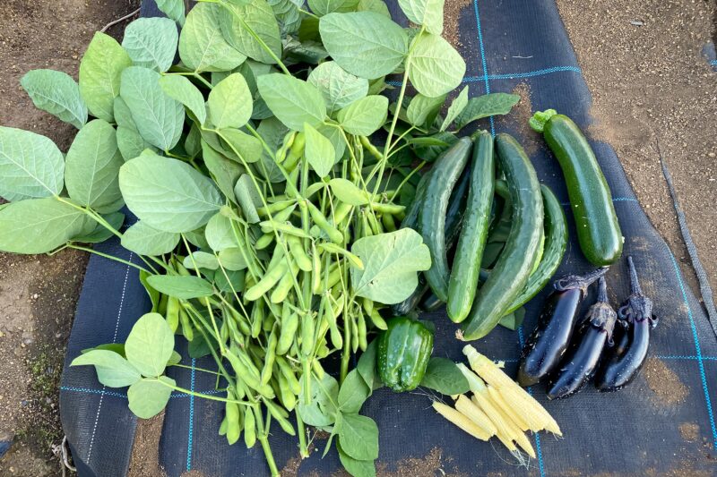 枝豆は年間30品目ほど育てる作物の中でもトップ3に入るくらい収穫が楽しみな野菜です。それって我が家だけでなく農園全体でも人気が高いようで、その理由は収穫直後のとびきり美味しい枝豆が食べられるから!