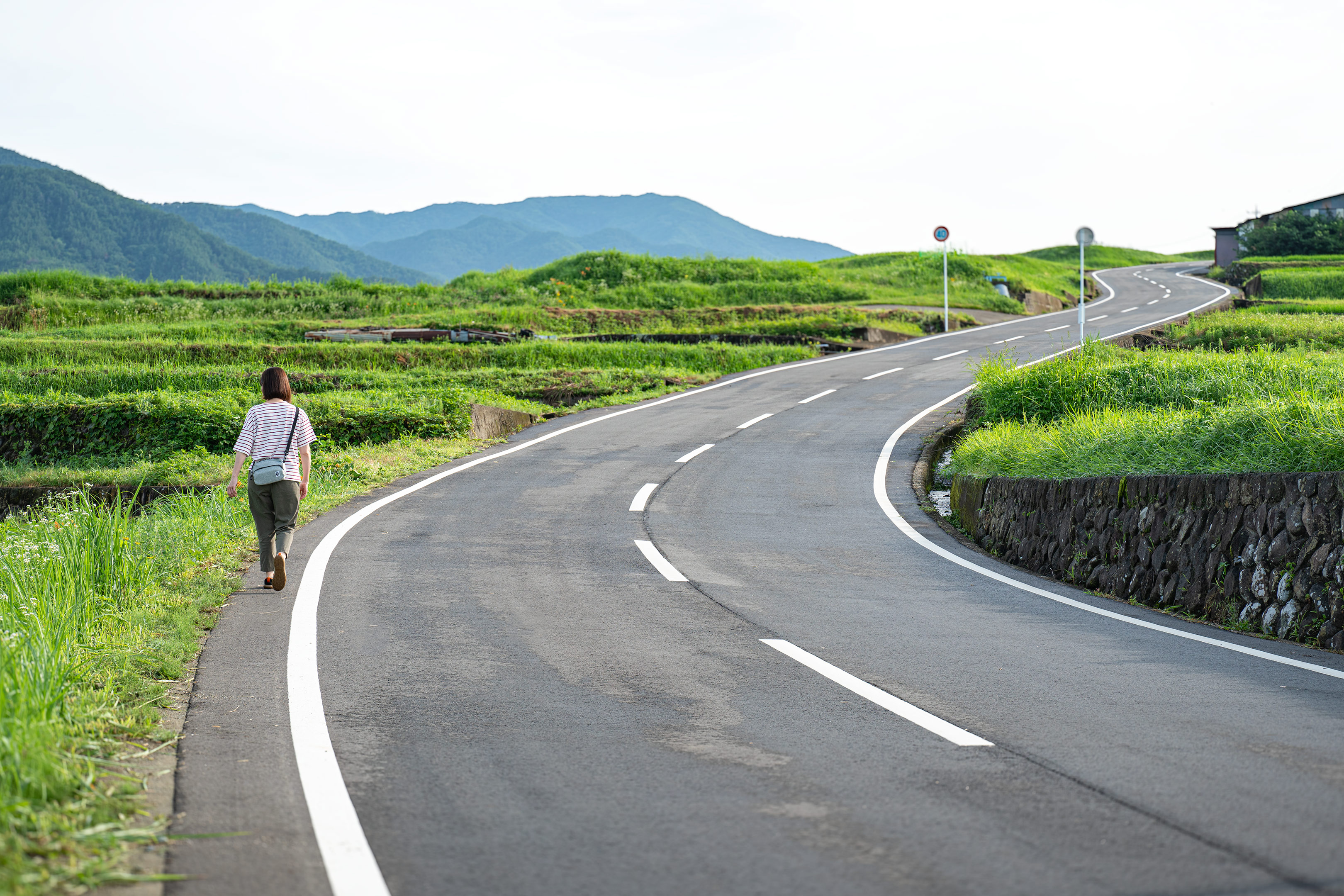 自宅近所を歩いていると「あんたはいったい何処からきたのか?」という目線で通り過ぎる車のドライバーがこちらを見ていきます。都会と違ってこの辺りは1人1台車を所有していますから、歩いている人と言ったら田んぼや畑での作業者や、都会からの移住組と相場が決まっています。 それ以前に、ここいらでは一番広い県道であっても車通りは疎らで、仮に人が歩いていたら「第一村人発見!」的な存在感になってしまいます。今日の写真は我が家から歩いて数分の場所。幹線道路なのに電信柱すらないこの世界感、週末を過ごすには最高です。