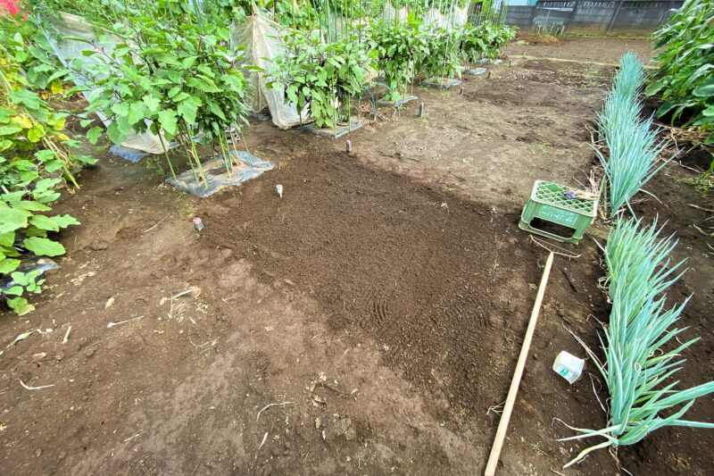 ちなみにこの緑肥エリアは秋冬野菜の白菜、蕪、タイニーシュシュあたりを植える予定でそれまではこうして土が完成するのを待ちます。