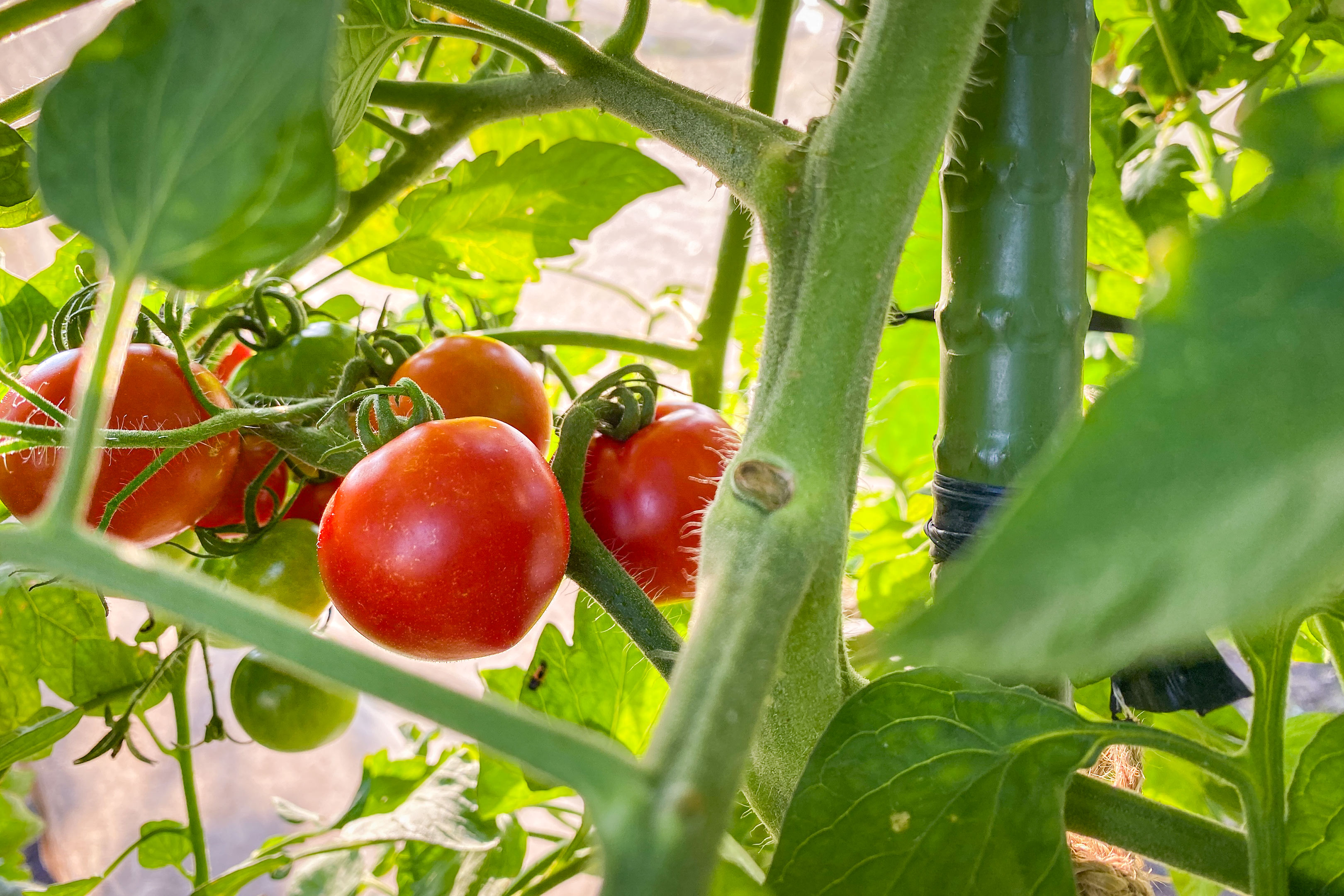 トマトもいよいよ第3花房の収穫となりましたから一番味が乗ってきて美味しい時期です。大玉トマトも中玉トマトも、もちろんミニトマトも、緑の中に真っ赤な実が点々と散りばめられた感じで畑がとても華やかに見えます。