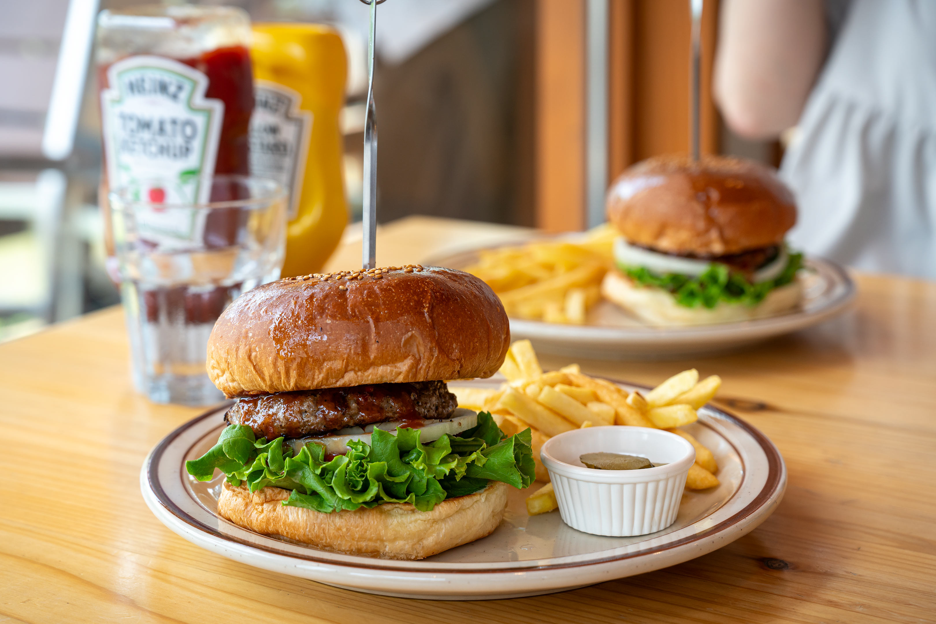 そんなわけで今日も熱中症寸前まで庭仕事をした後、せめてものリゾート観光気分を味わいながら美味しいものを食べようということで小淵沢にあるバーガーショップまで足を伸ばしました。