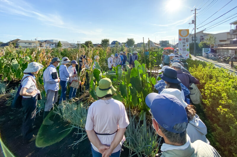 気温は35℃オーバー。正確な値は知りませんが身の危険を感じる酷暑の中、東京の農園ではこの週末が講習会。さすがに安全を考慮していつもの朝9時ではなく夕方16時からの実施。前日が台風の影響で中止となった影響か参加者は80人近く集まりこれまでに例がないほどの規模間で実施。