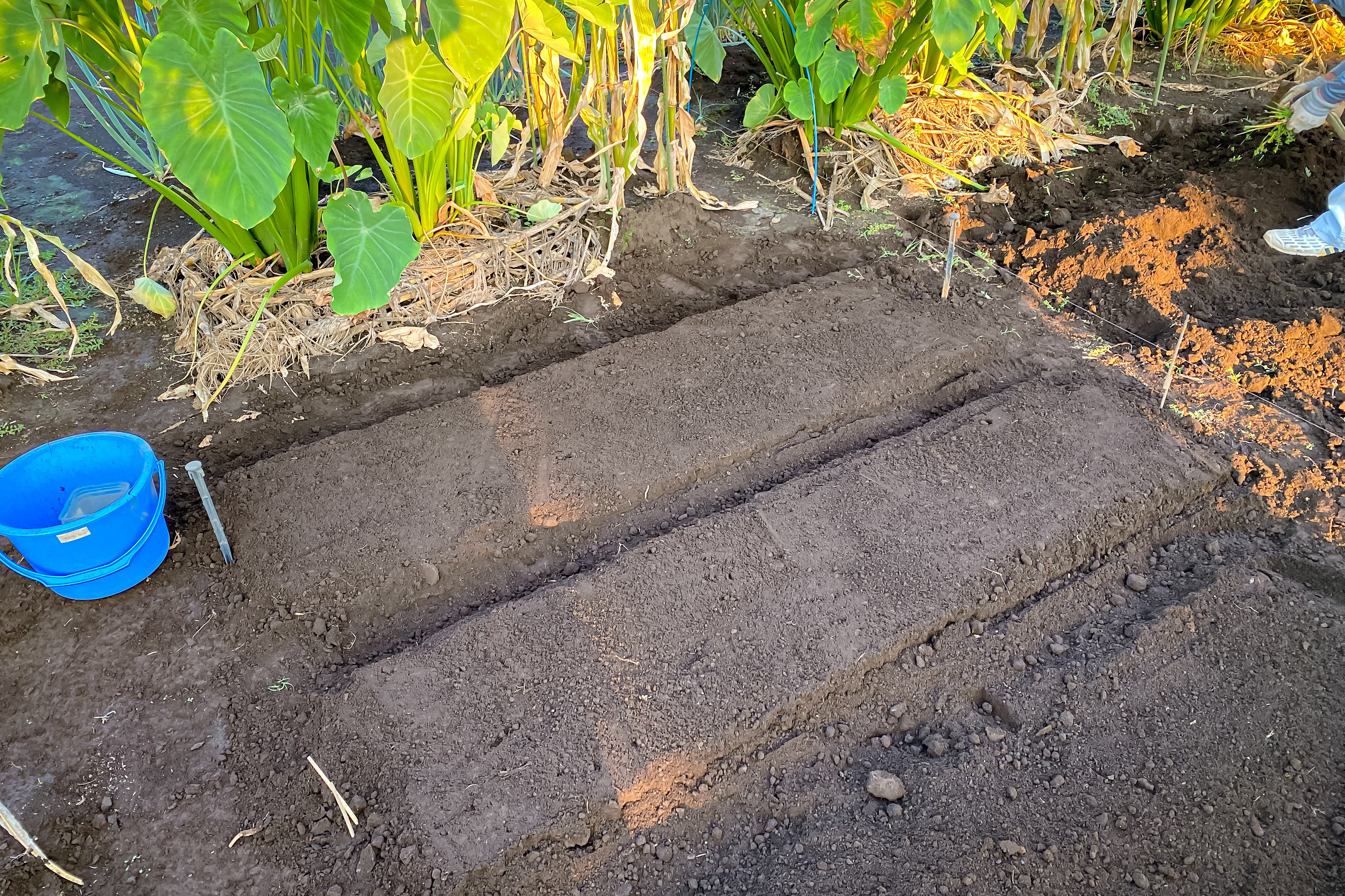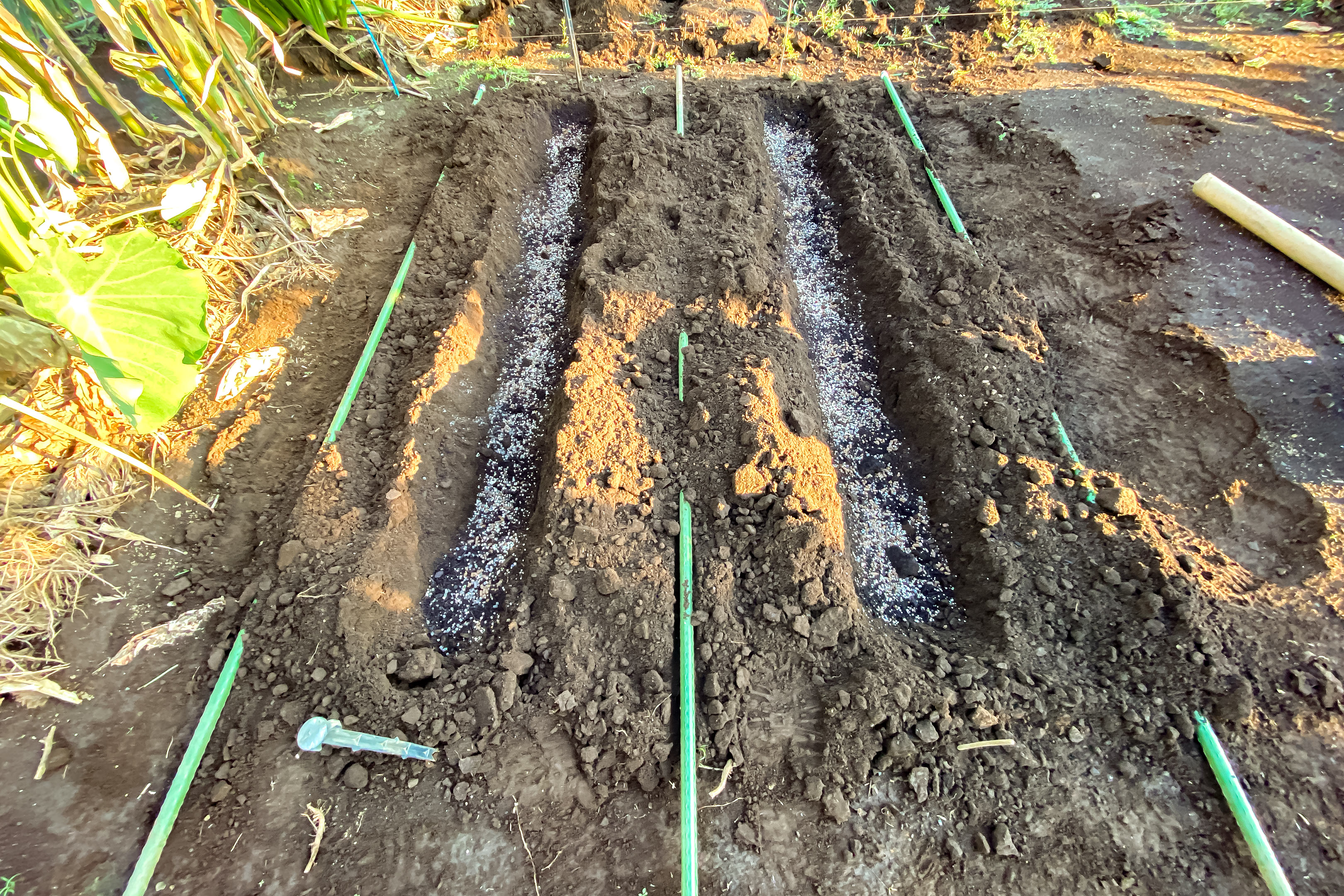 この後この畝は完全な更地とし秋冬野菜は作らず、土づくりの基本となる緑肥を植える予定です。