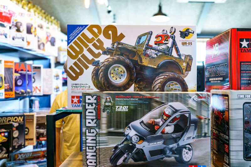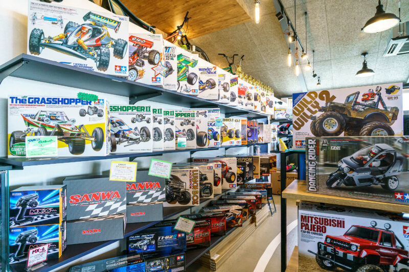 このエリアにはかなり反応してしまいました。キットラジコンがずらっと並んでいるのは誰の目にも明らかですが、取り扱っているモデルは往年の名車の数々ですから!