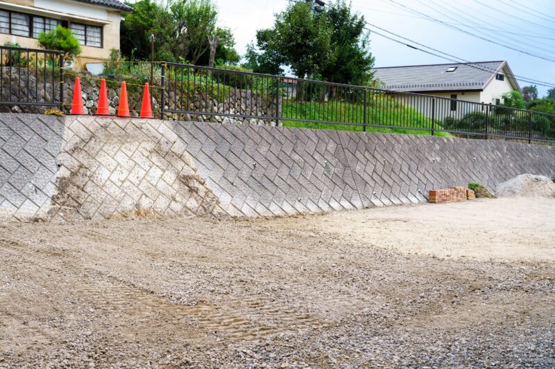 いやぁ見事なものです。地中1メートル近くまで基礎コンクリートが続いていたものを砕き掘り返して平らに仕上げていただきました。しかも道路側のコンクリートブロックには傷をつけず我が家の敷地分だけをごっそり無かったことに。