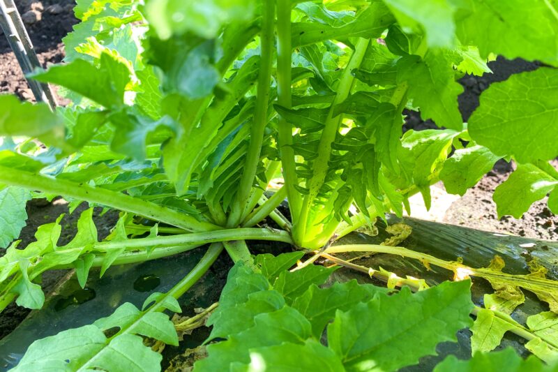 根本を見てみるとご覧の通り、確かに1つの穴から2本の大根が成長しているのが分かります。このうちの1本を現時点で抜き取ってしまうというわけですね。そうすることで一番元気の良い大根だけが畑でのびのび成長しますから収穫時期に向けて立派に大きくなってくれるというわけです。
