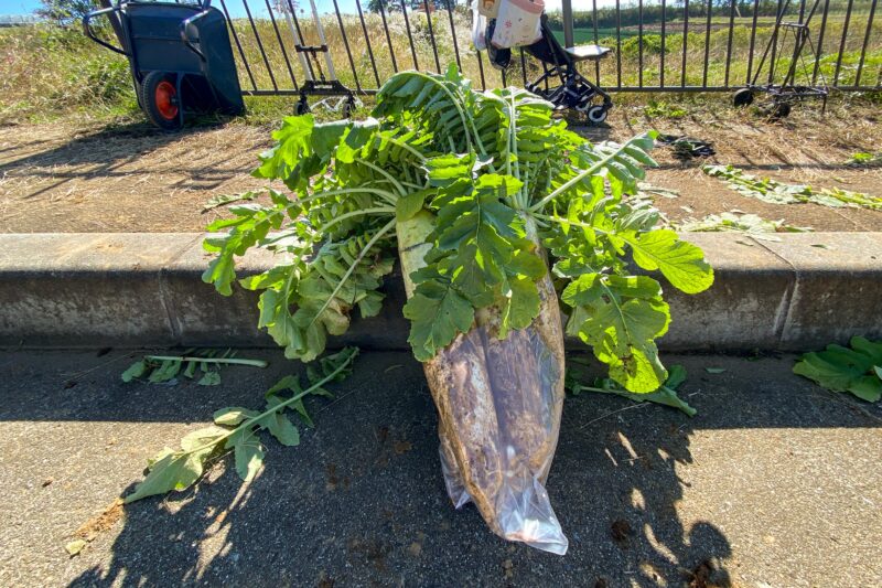 手持ちで運んだダイコン。いやぁ重かったです。袋は1枚1,000円ですから決してコスパが良いとは言えませんがこういうイベントで収穫&詰め放題というところが面白いんですよね。
