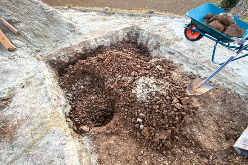 ただ土を耕すだけならこれで良いのですが、ここはもともと畑ではありませんから一輪車の上に積んであるような巨大な石がゴロゴロ出てきますからそれらを撤去しつつの作業となり、この後は拳大の大きさの石の撤去、続いて3cm大の石、最終的にはサラサラのパウダー状の土となるようふるいを掛けていくことになります。