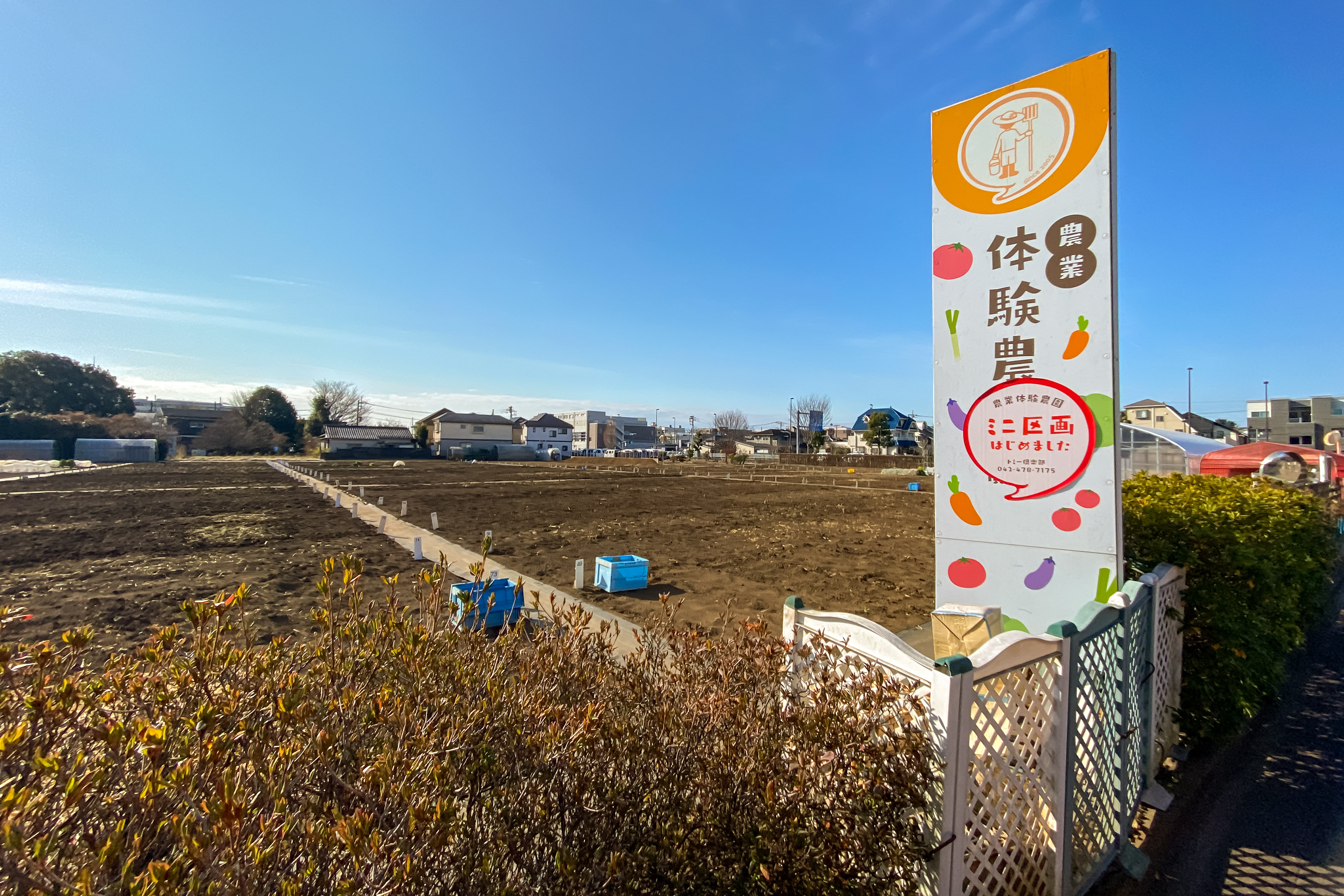 1月末が収穫の期限とされていた各々の区画の野菜たち。見渡す限りほぼ全ての区画で収穫が完了し ”お礼肥” と呼ばれる施肥と緑肥のすき込みを終え、約1ヶ月後の来シーズンに向けて土づくりの最終調整を行なっています。