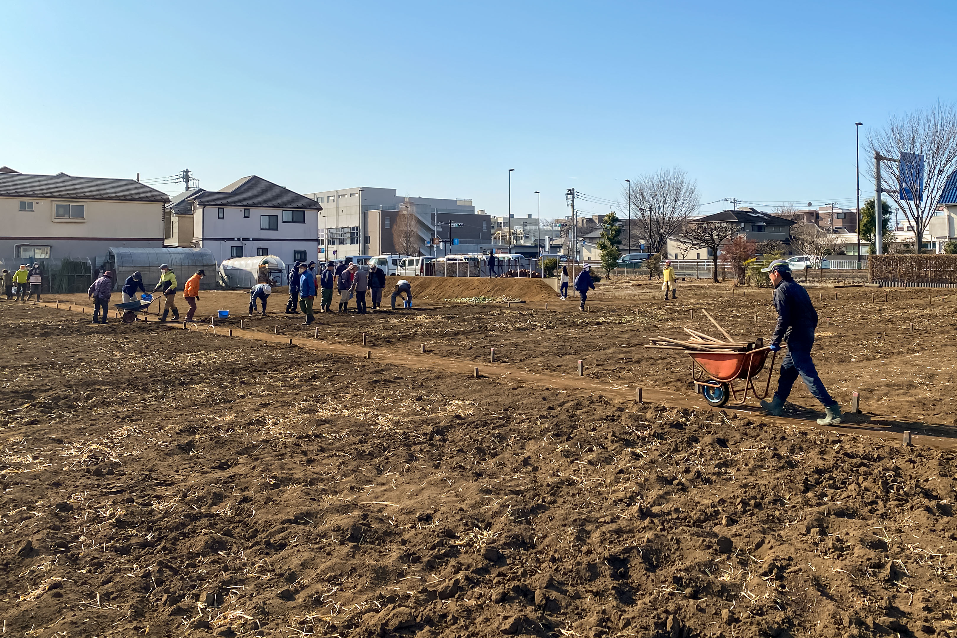 農園の事を知らない通行人の人から「これは一体何の騒ぎですか?」と質問を受けました。そりゃそうですよね数十人の人が空っぽの畑に広がって皆がせっせと働いているのですから、傍から見たら何をやっているのだろう?と不思議に思うのは当然だと思います。