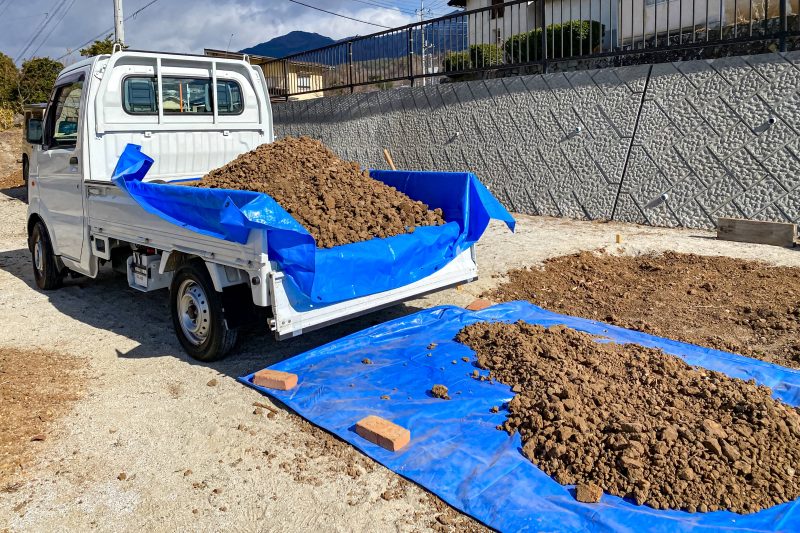 しかしこうした残土、処分するのは結構大変です。なんたって軽トラ2台分くらいありますのでそこいら辺にまいてしまうわけにもいかず。綺麗な石なら引き取ってくれる業者があるとか、ホームセンターなどで新しい土を購入すれば同量の古い土を引き取ってくれるとか、手段がないわけではありませんが、今回のような厄介な土は困るわけで。