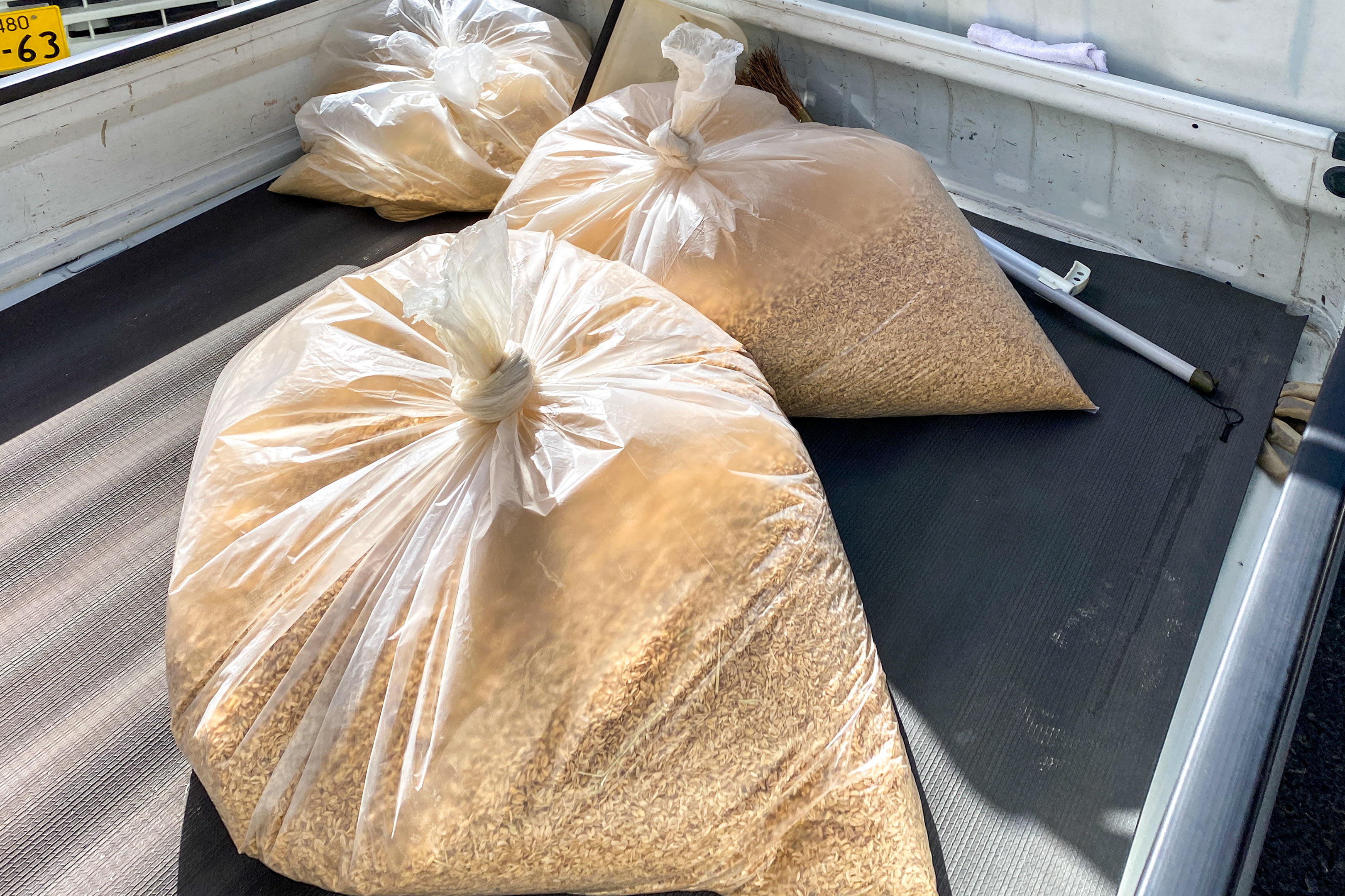 とは言え、自分たちのスケジュール感で体を動かすだけでなく、再調達が必要な資材についても余裕を持った準備が必要です。特に米糠や籾殻はその地域で畑作業が動き出す頃には争奪戦になる場合もあるそうなので、我々も最低限残りのブロックに必要な量を精米所まで貰いに行ってきました。在庫が底をつくほどではなかったものの、米糠に関しては確かに残量僅かでしたね。