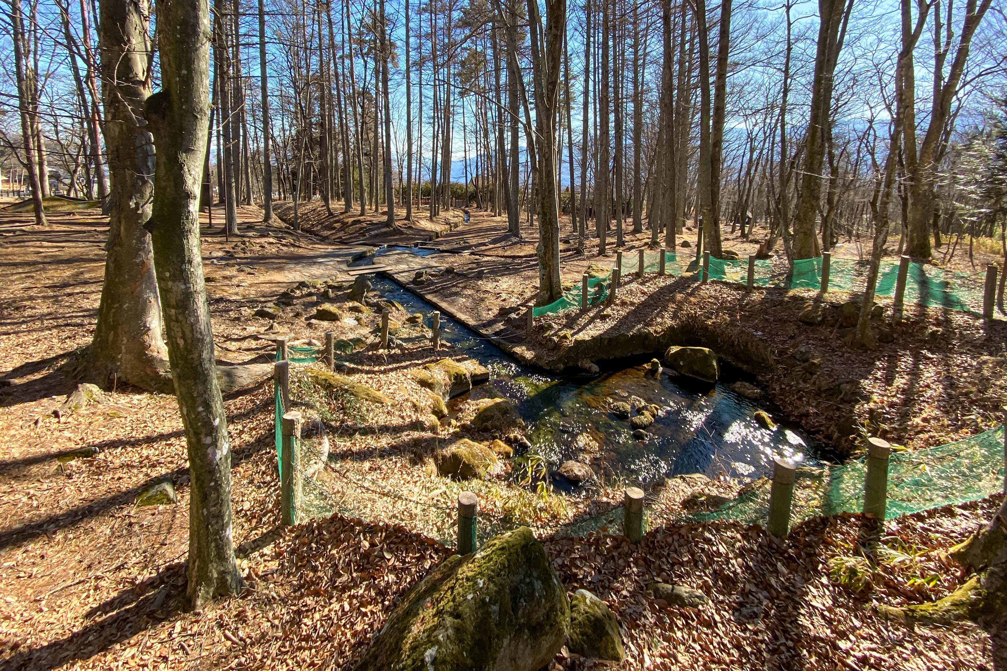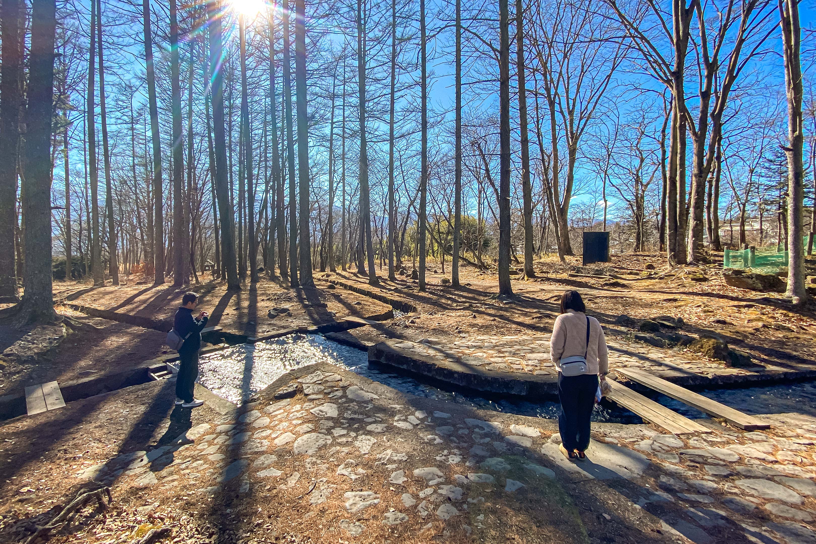 この周辺はまるで公園のように綺麗に整備されていて、遊歩道が歩きやすいだけでなく林の中を見ても大変清潔感があって気持ちが良いです。ただし気温は低いので普段より1枚多く着込んでいくのが吉。