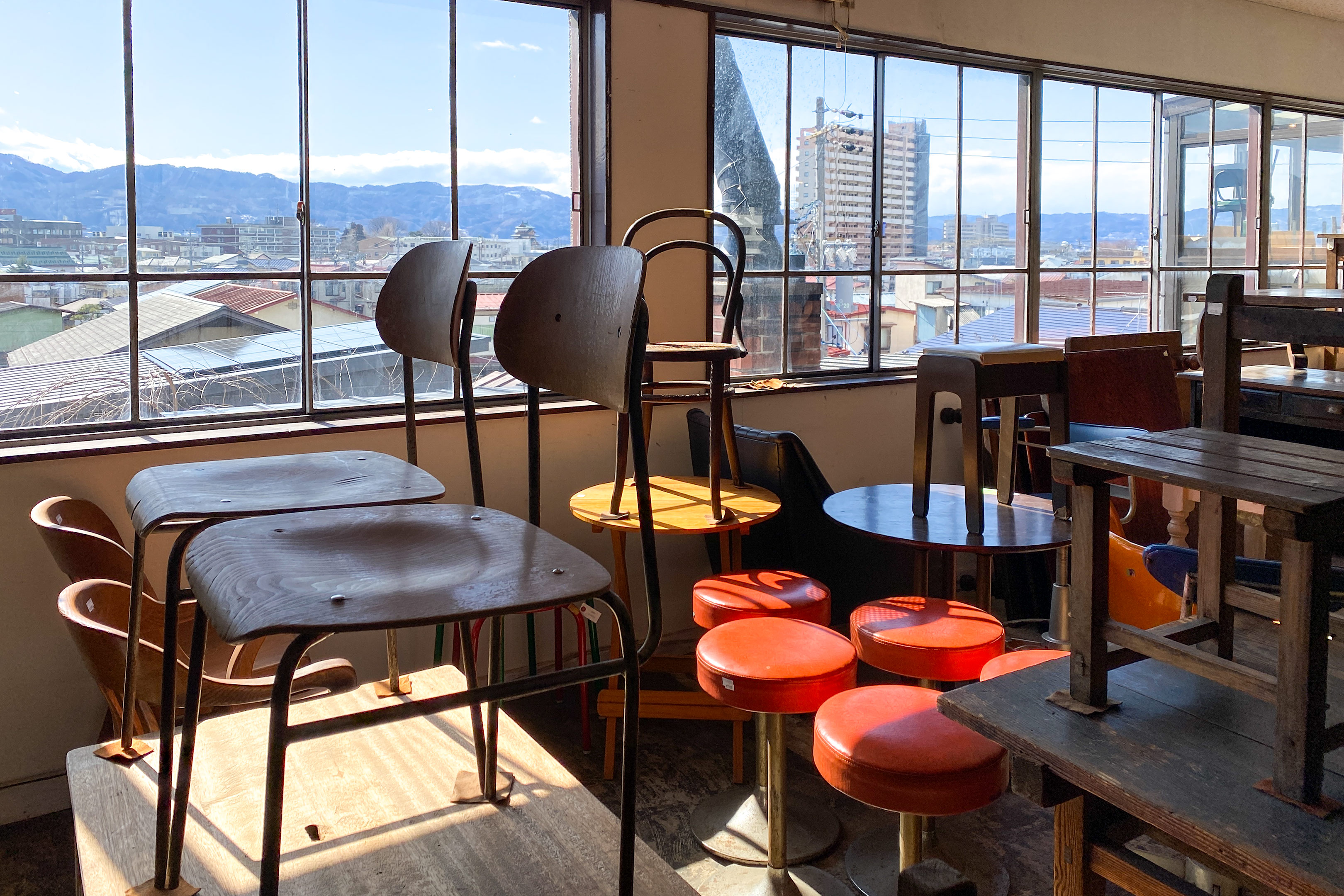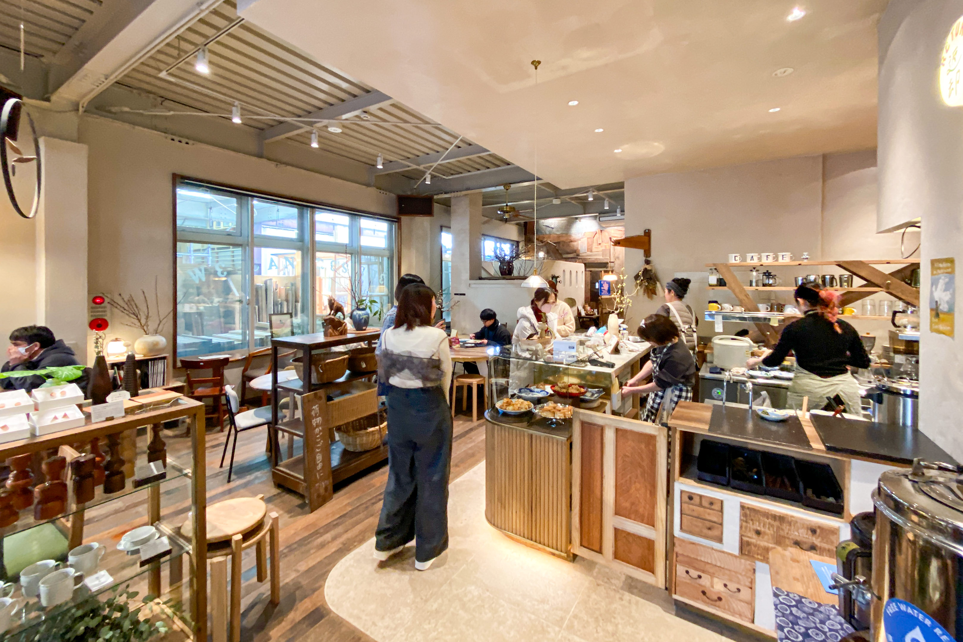 古い家具などを販売するショップだけかと思いきや、驚くことに店内には清潔感のあるカフェがありました。おそらく調理場を除く客席の多くはリユース品で構成されているのだと思います。最近は東京でもこうした古材を活かしたアンティークな雰囲気のカフェって流行っていますね。