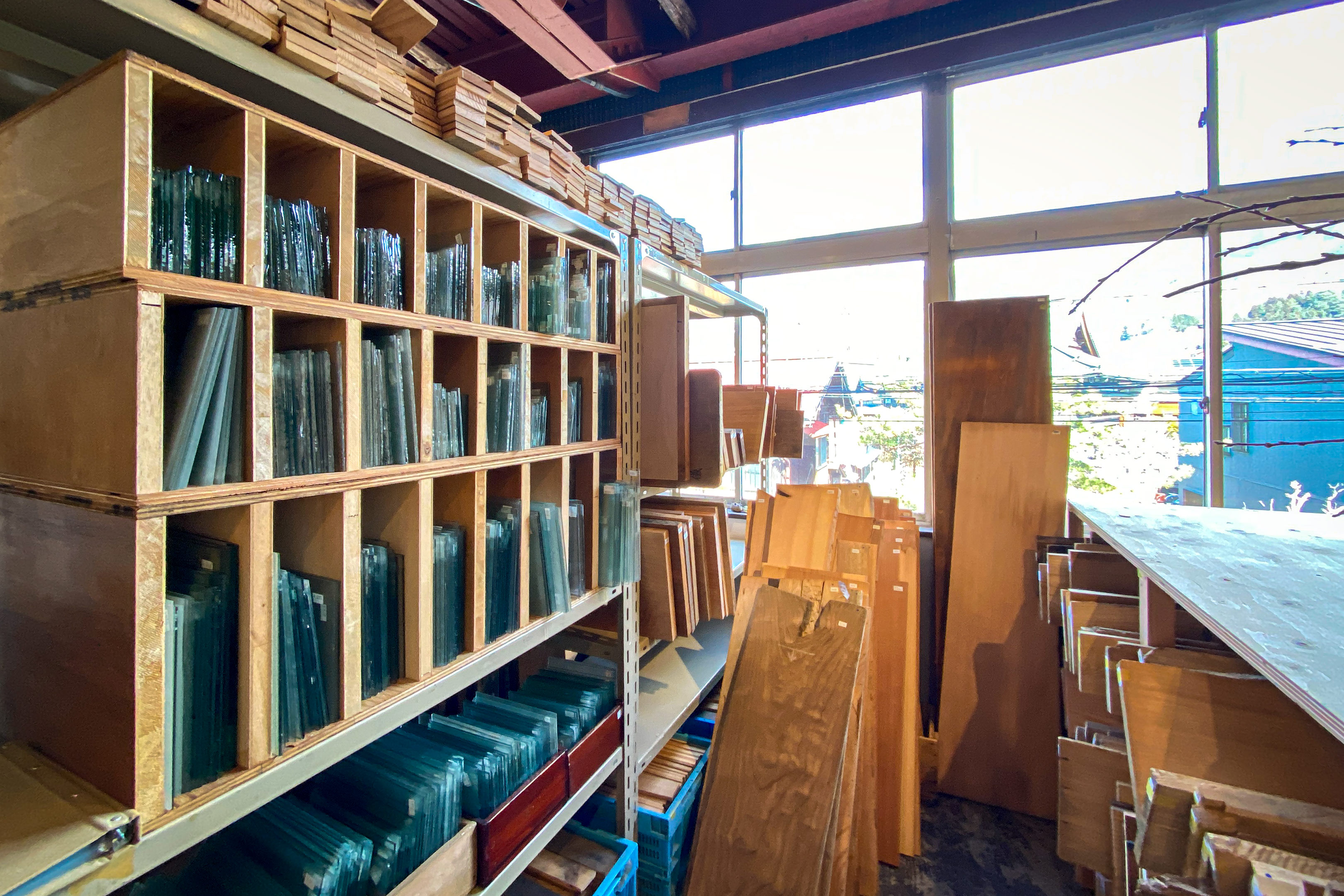 木材やガラスといった素材の一つ一つもバラ売りされています。ガラスなんて普通にガラス屋さんで手に入るじゃないか!とも思いますが、そこはやはり古いガラスの味を求めてここに来るわけですから、板ガラス一つにしても現代のガラスのように真っ平ではなく製造上少し波打った不均一な仕上がりを楽しみたいとか、昭和を思わせる模様の入ったガラスも入手可能。