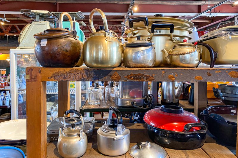ヤカンや鍋だって様々な形状とサイズの取り扱いがありました。家電製品と違ってこちらは現役で使えそうですね。古いダルマストーブとの組み合わせで昭和の雰囲気を味わうには手っ取り早いアイテムかも。
