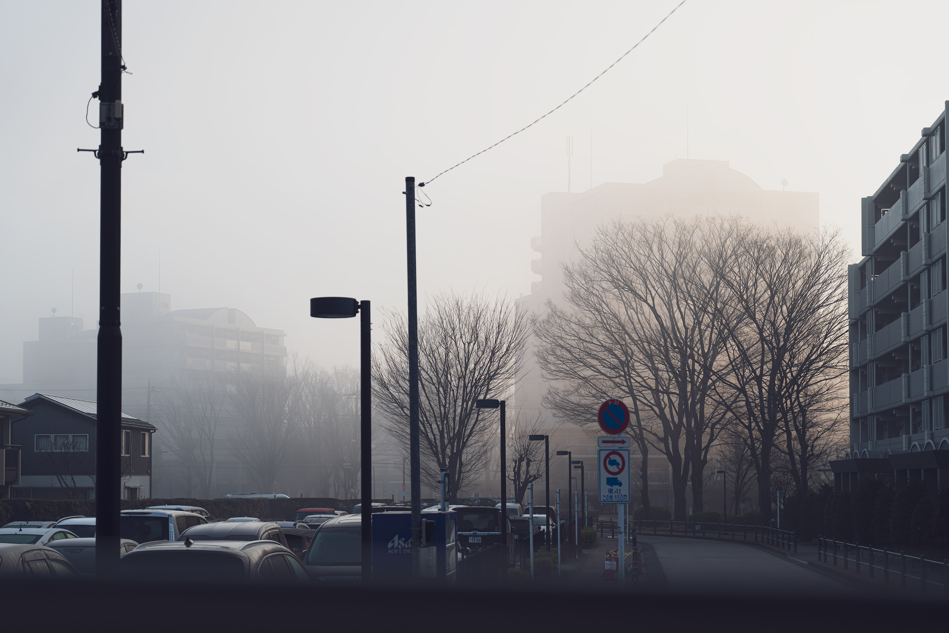 いつもの景色が幻想的に見えた昨日の朝。東京でも年に1,2回はこんなふうな霧に包まれた朝を迎える事があります。 こういう画はフィルムで撮影するともっとノスタルジックに写せるのですが、そのためだけに新品フィルムはストックしていませんからいつも通りデジタルで撮影。 仕事ではない週末の朝ならスナップ用のレンズとカメラセットでここぞとばかりに街ブラしたらきっと面白い画が撮れたと思います。生憎この日は早朝から仕事に出かけたので撮れたのはこの1アングルだけ。