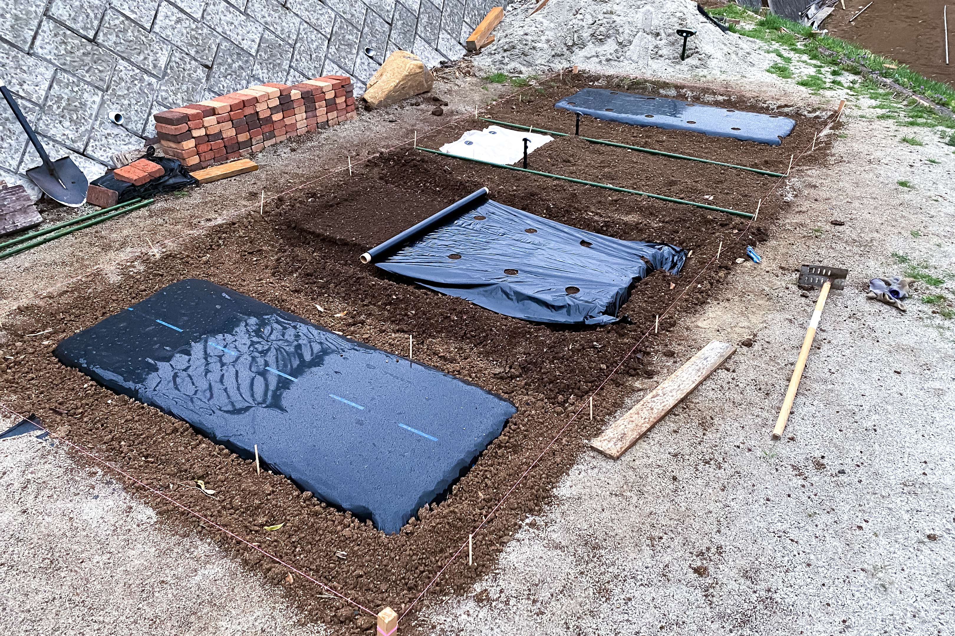 上の写真がマルチを敷いている途中の様子。気温5℃でしたが汗をポタポタ地面に落としながら全力投球で体を動かしました。
