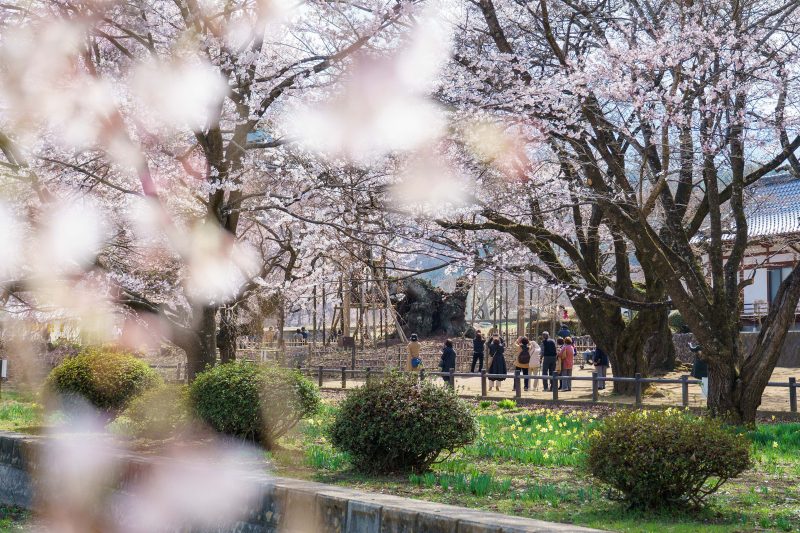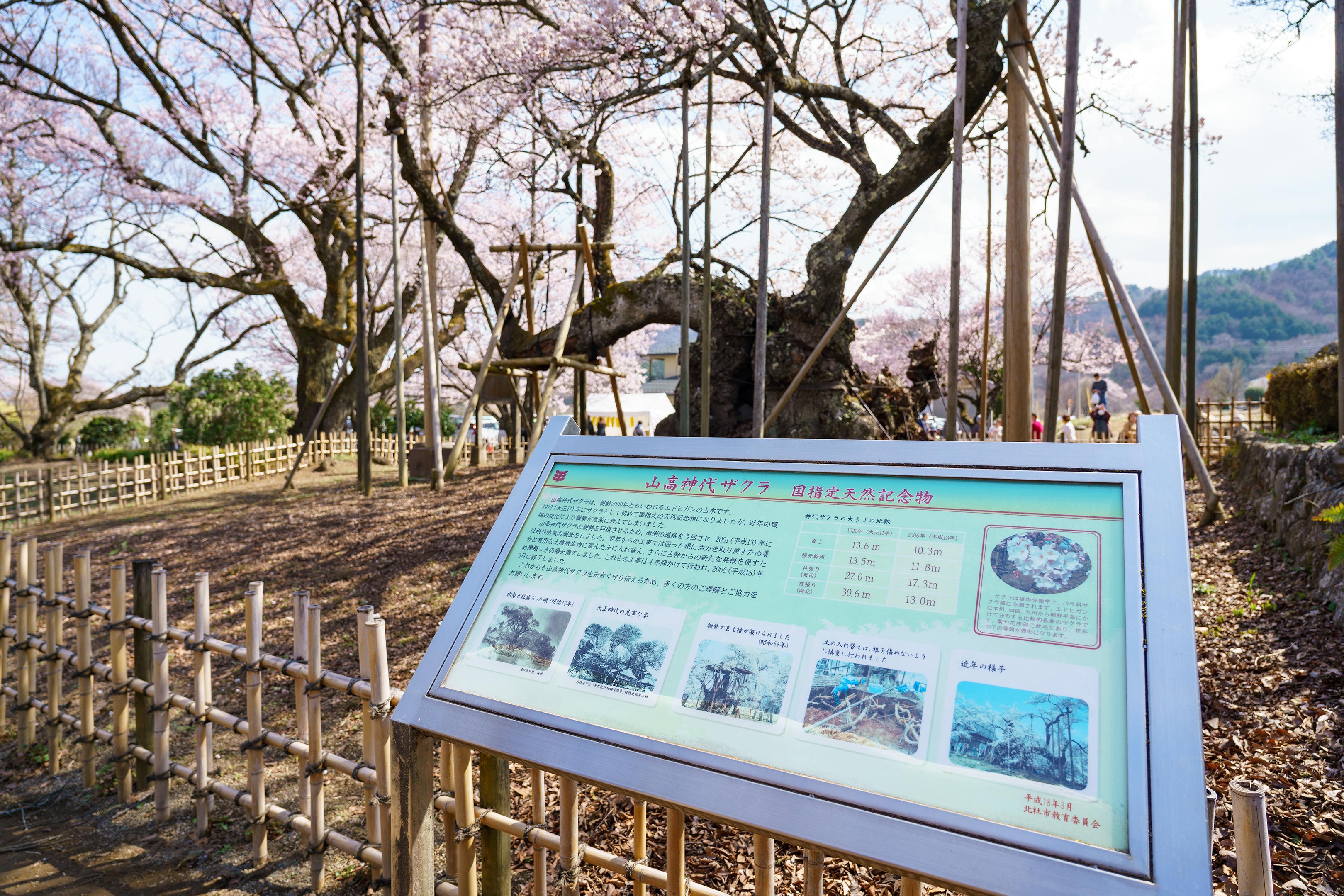 説明によればこちらの桜は山高神代桜(やまたかじんだいざくら)と呼ばれ国の天然記念物に指定されているそう。エドヒガンザクラですね。