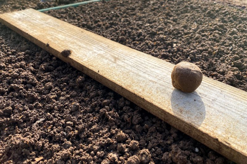 その点我が家の畑の現状は上の写真にある通り土を丸めると完全に泥団子が出来る保水性に優れた土ですからサトイモには向いているのではないか?と考えています。