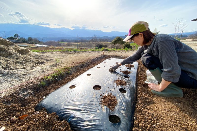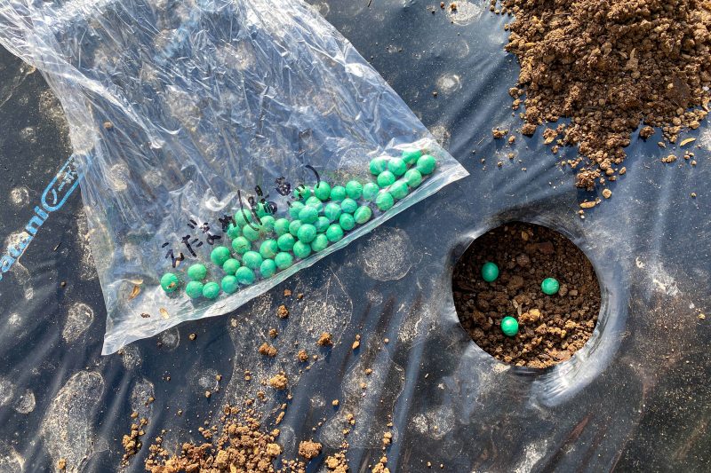 品種は東京の農園でも育てたことのある陽恵。1穴3粒蒔きで発芽後に間引き予定。上手くいけば7月中旬収穫予定。