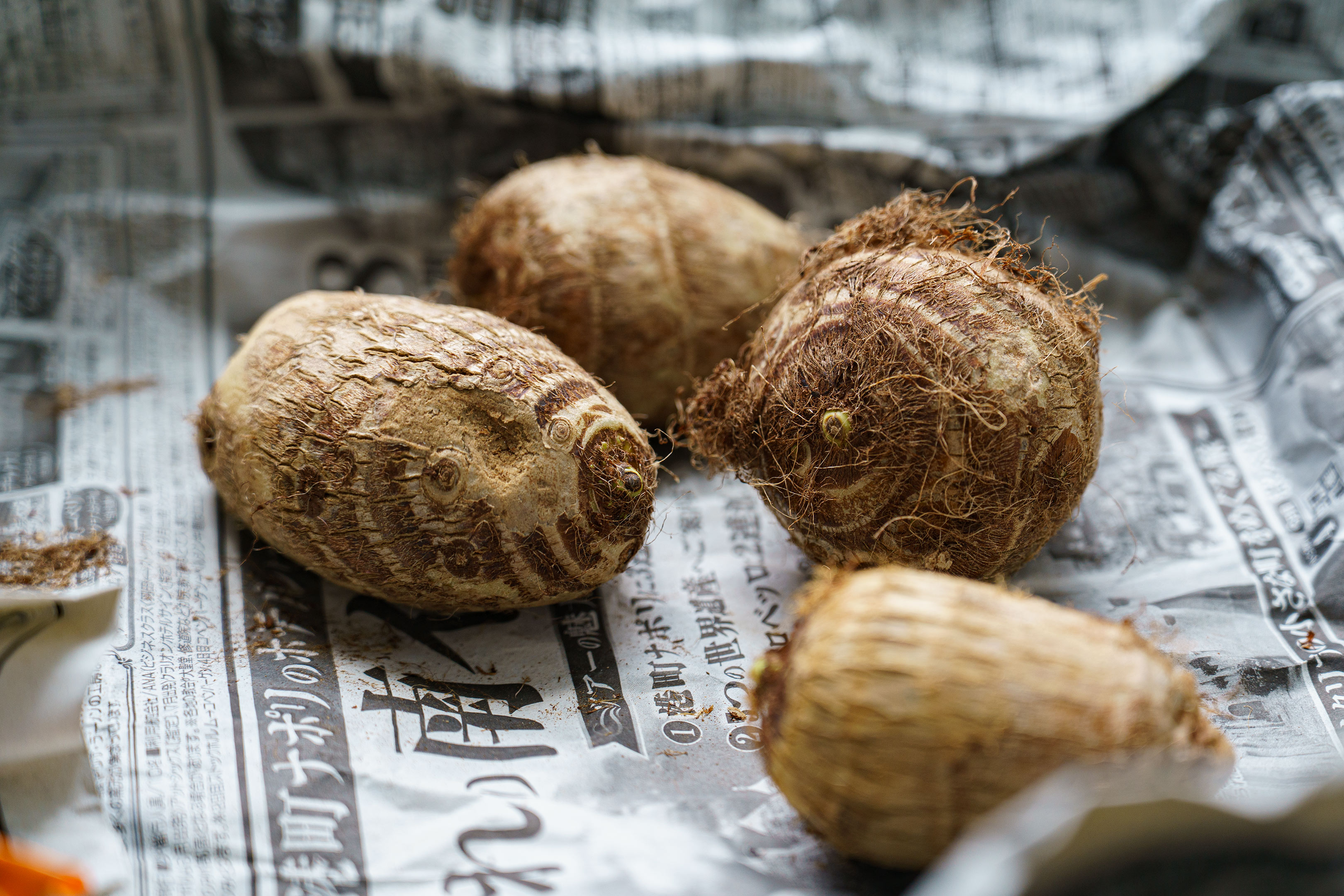 こちらは数週間前に購入しておいたサトイモの種芋。品種は土垂(どだれ)。