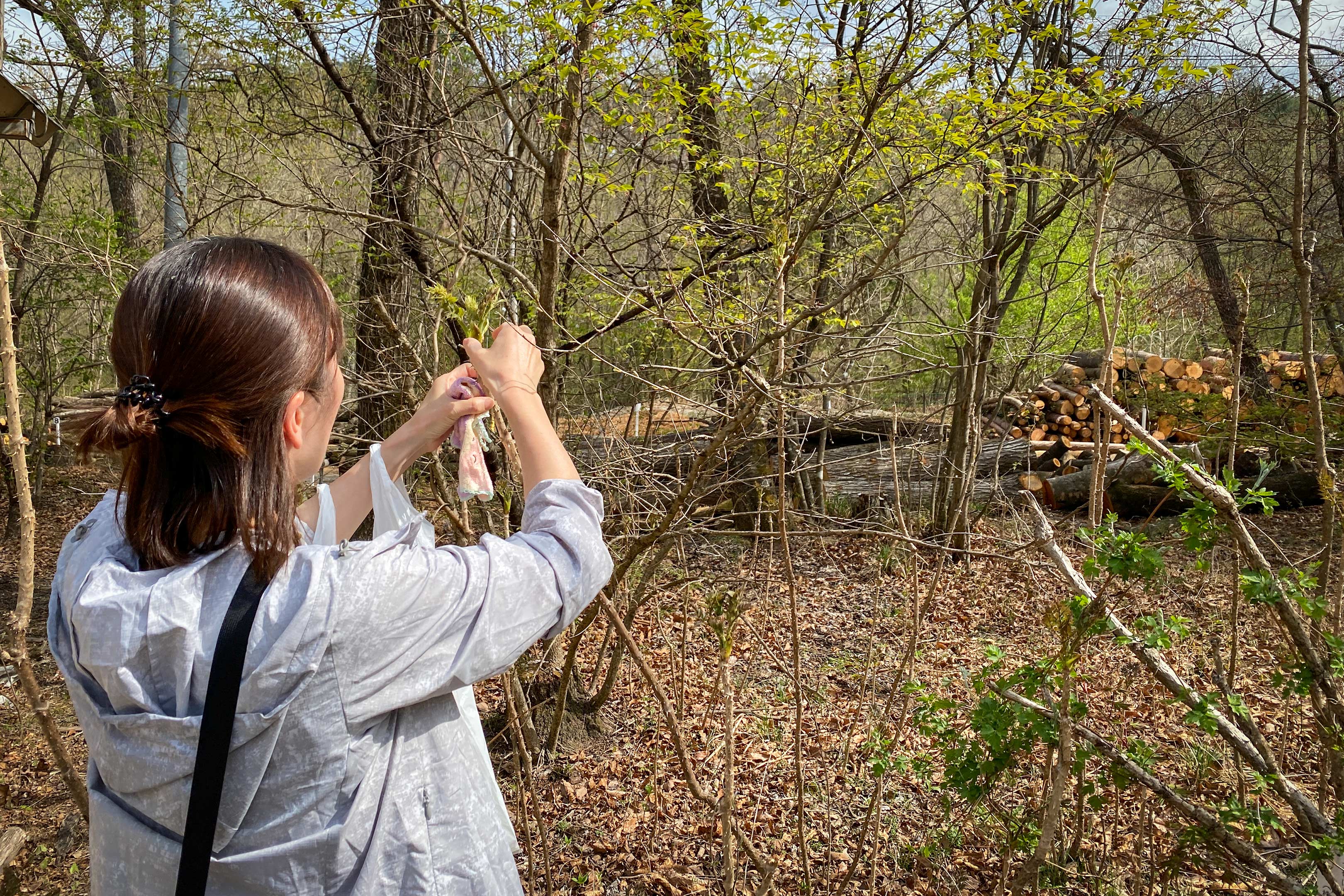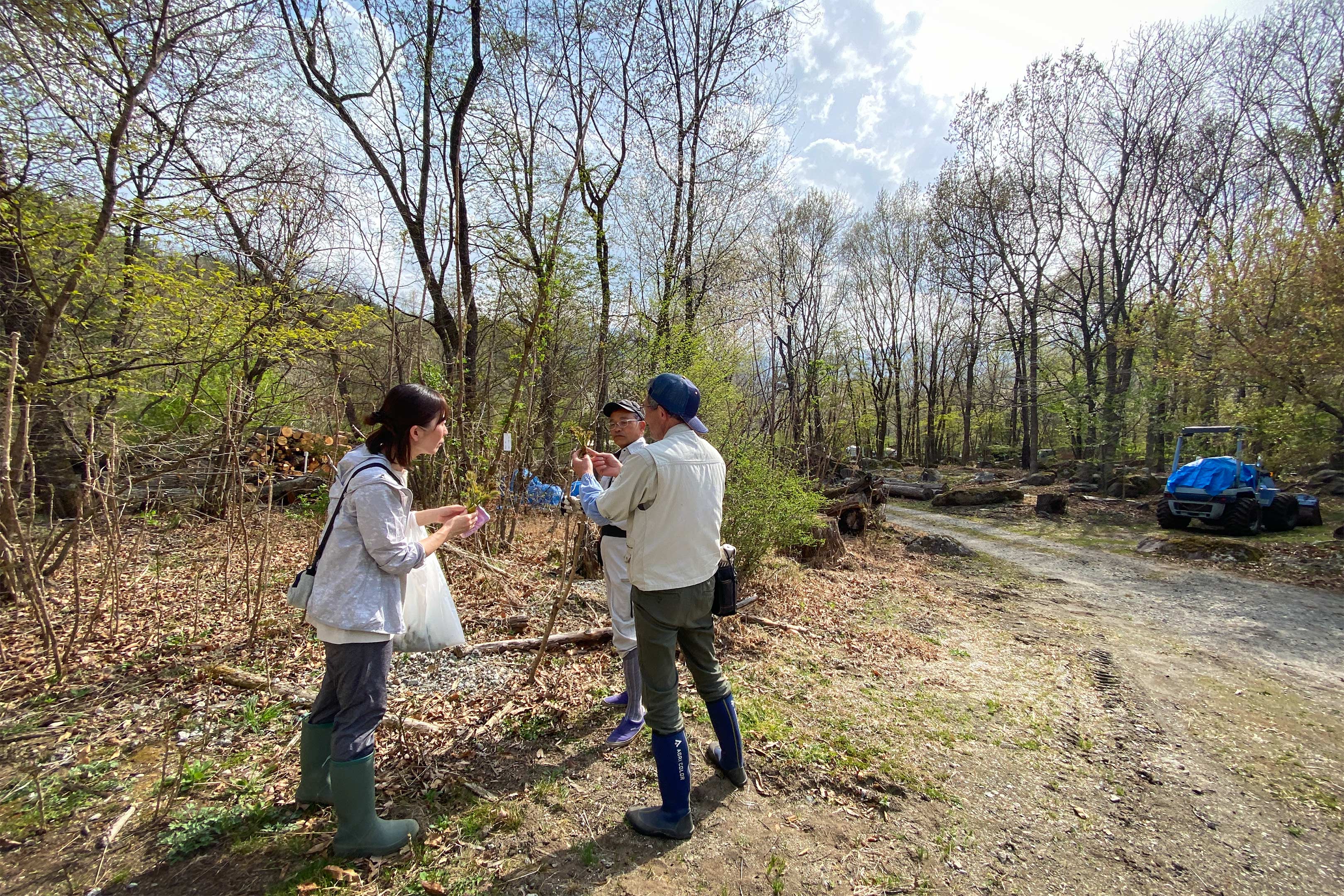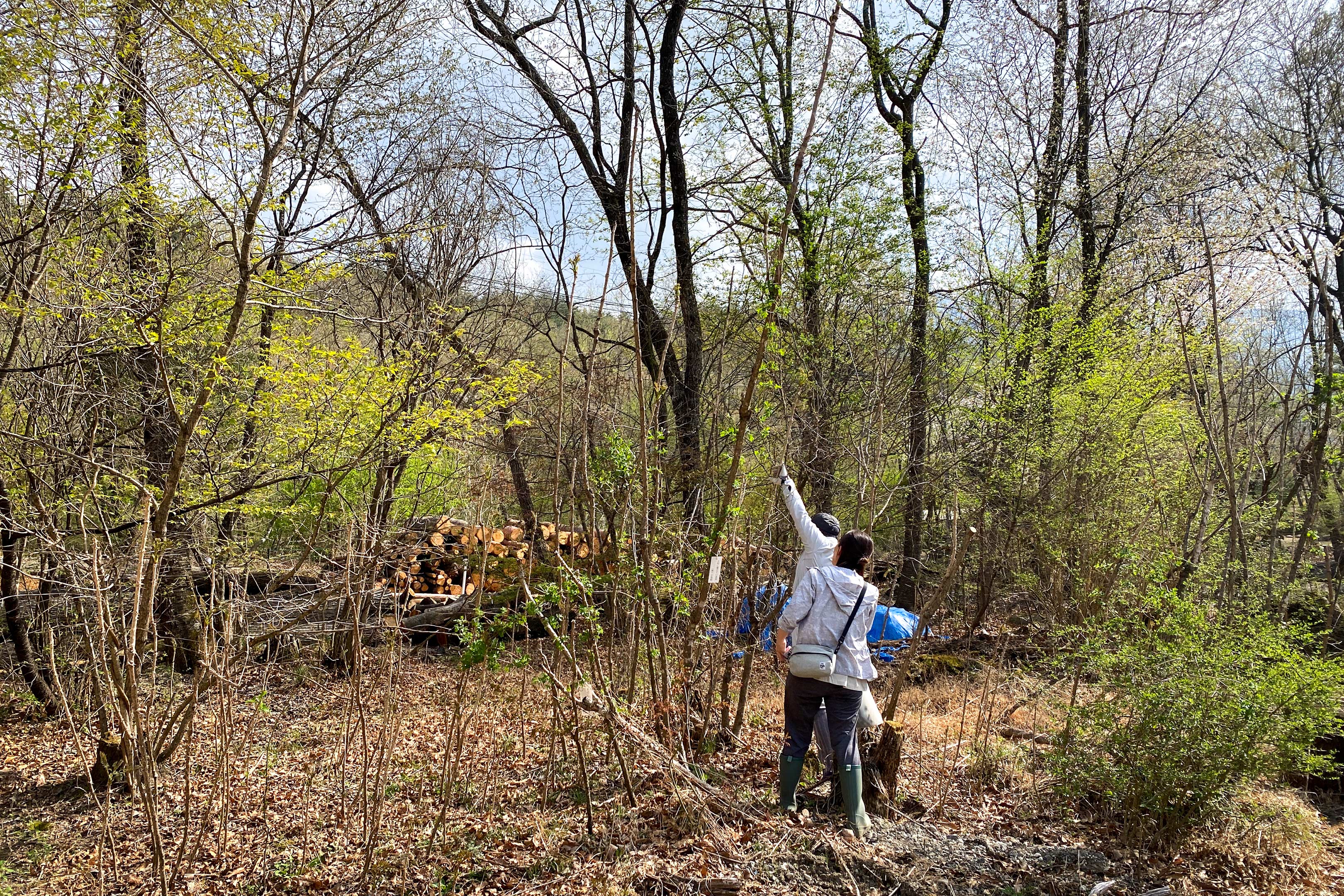 約束の時間14時に山梨の少し奥まった場所へ集合。今日は山のベテランさんに同行してもらいタラの芽の収穫体験。