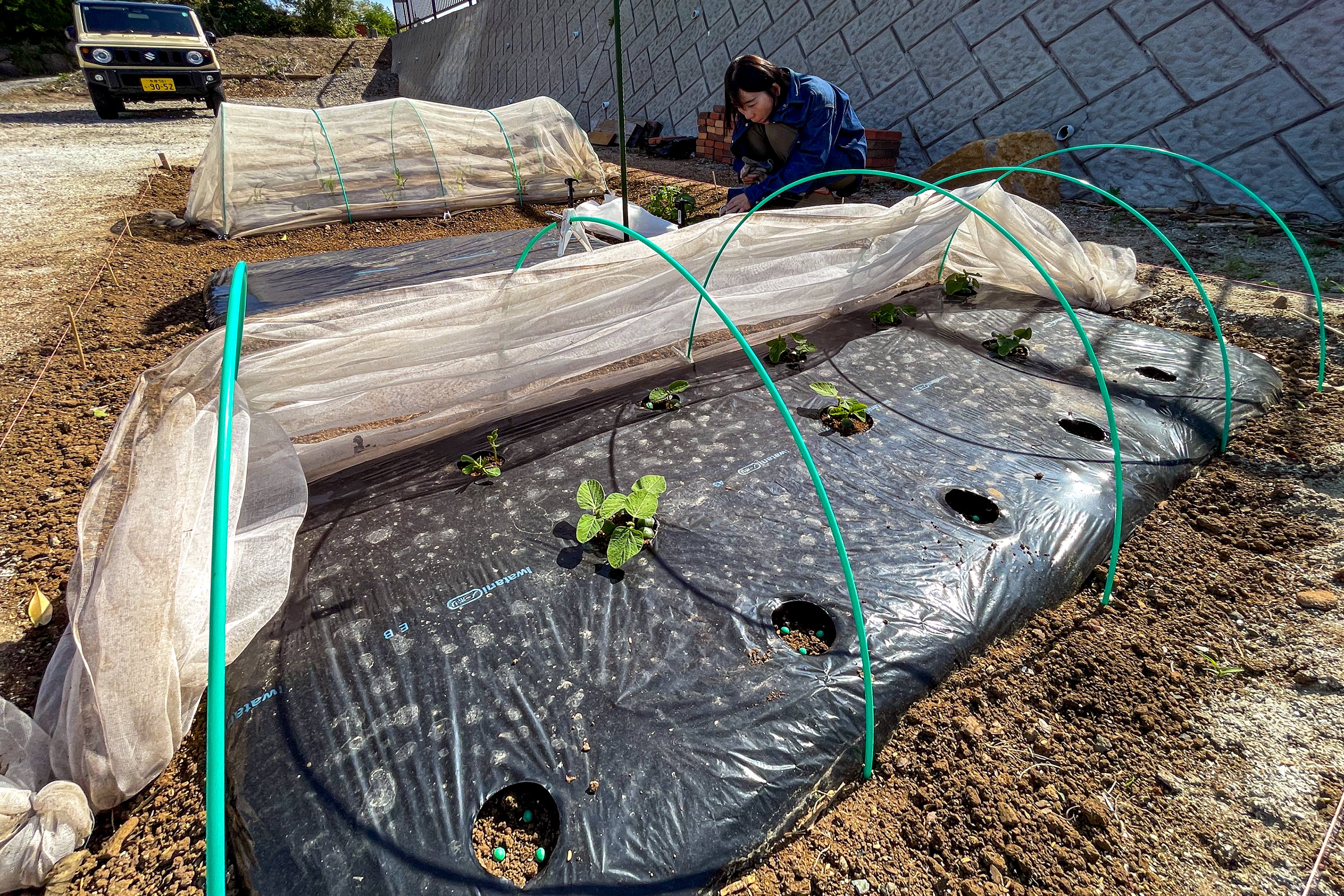 山梨にある我が家の周辺には動物や虫がのびのびと暮らしており田畑が荒らされることもしばしば。これでも寒冷紗トンネルを掛けておいたのですがトンネルの外側から何者かが爪を立てて攻撃したようです。寒冷紗トンネルの網も少し破けていました。