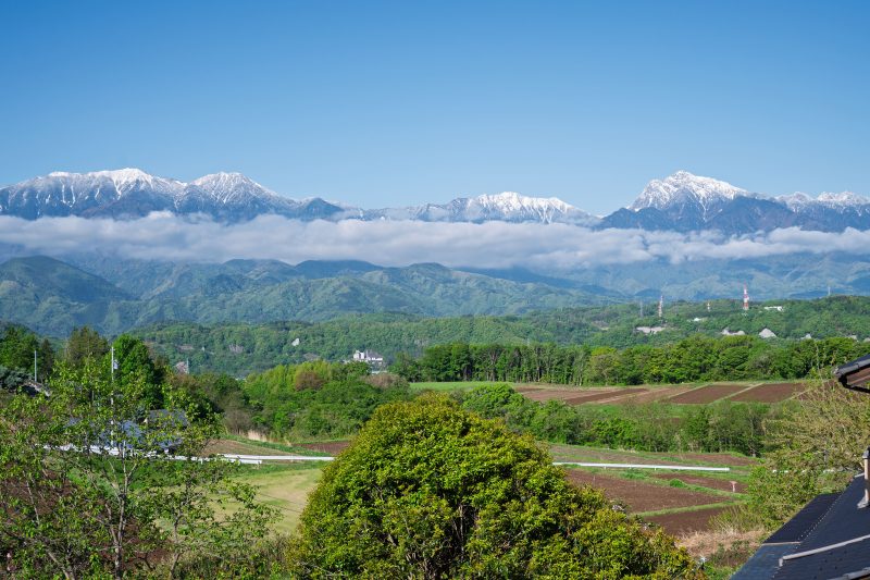 昨夜までの雨の影響で空気中のチリや埃が洗い流されたのは言うまでもなく、かすみ気味だった4月の空気が一気に真冬の透明度を取り戻した感じ。しかも高山にはいずれも新雪が降ったようで柔らかな雪景色。そう言えば数日前は我が家も最低気温3℃くらいまで下がり、野辺山では−4℃を記録したらしいですからまだまだ遅霜には注意ですね。