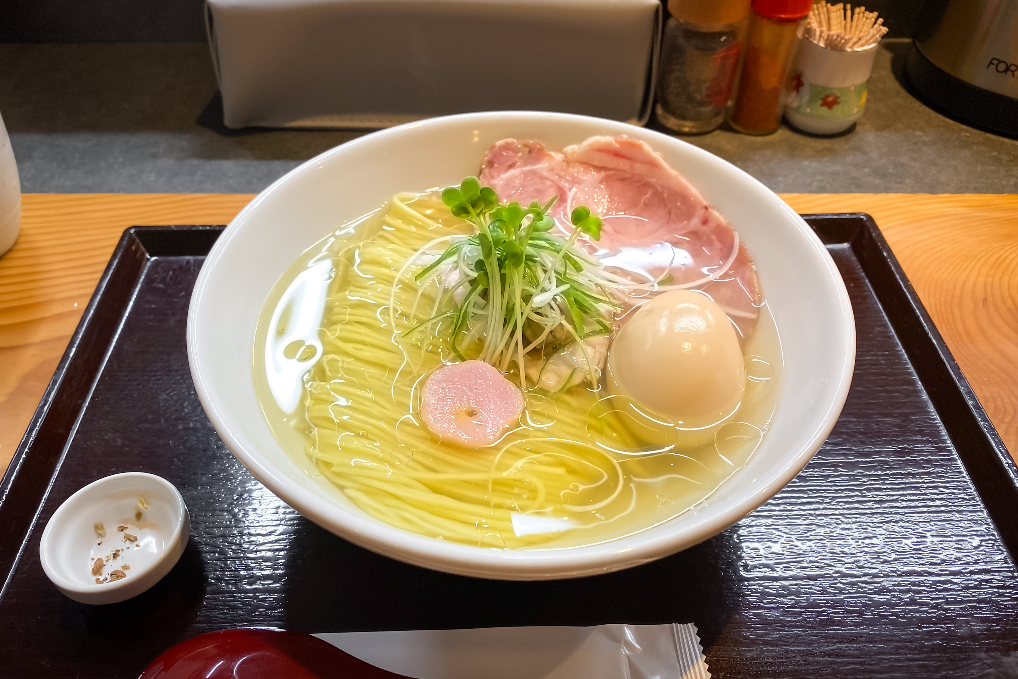 1枚目の写真が今回注文した塩ラーメン。どうですかこの透き通った美しいスープ。もちろん美味。麺の量が130グラムと150グラムから選ぶ事が出来私は150グラムをセレクト。チャーシューも鳥と豚から選べたはず。私は豚。