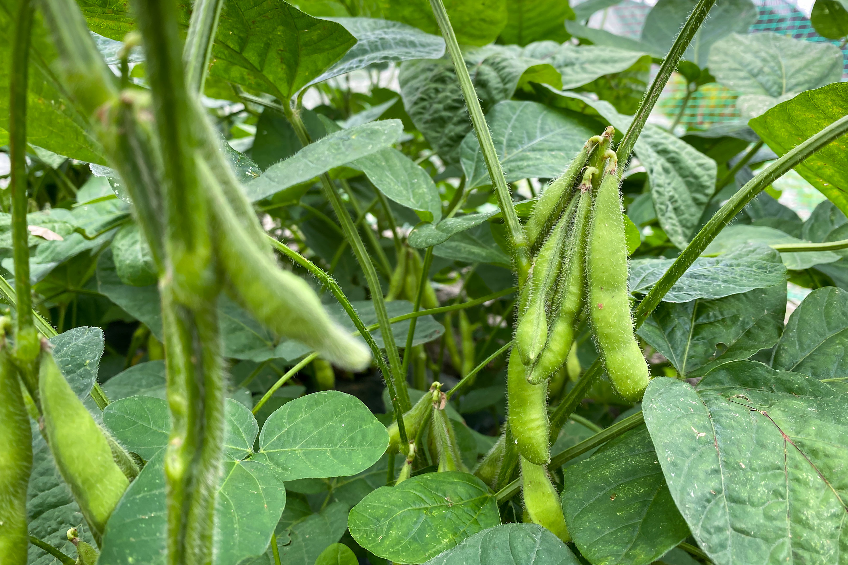 2週間の時間差をつけて春に蒔いたエダマメは早蒔きのほうがちょうど収穫のタイミングです。エダマメは収穫時期を迎えると食べごろ期間は3日ほどしかなく、それを過ぎると美味しさのピークを過ぎて大豆に近づいていくと言われています。