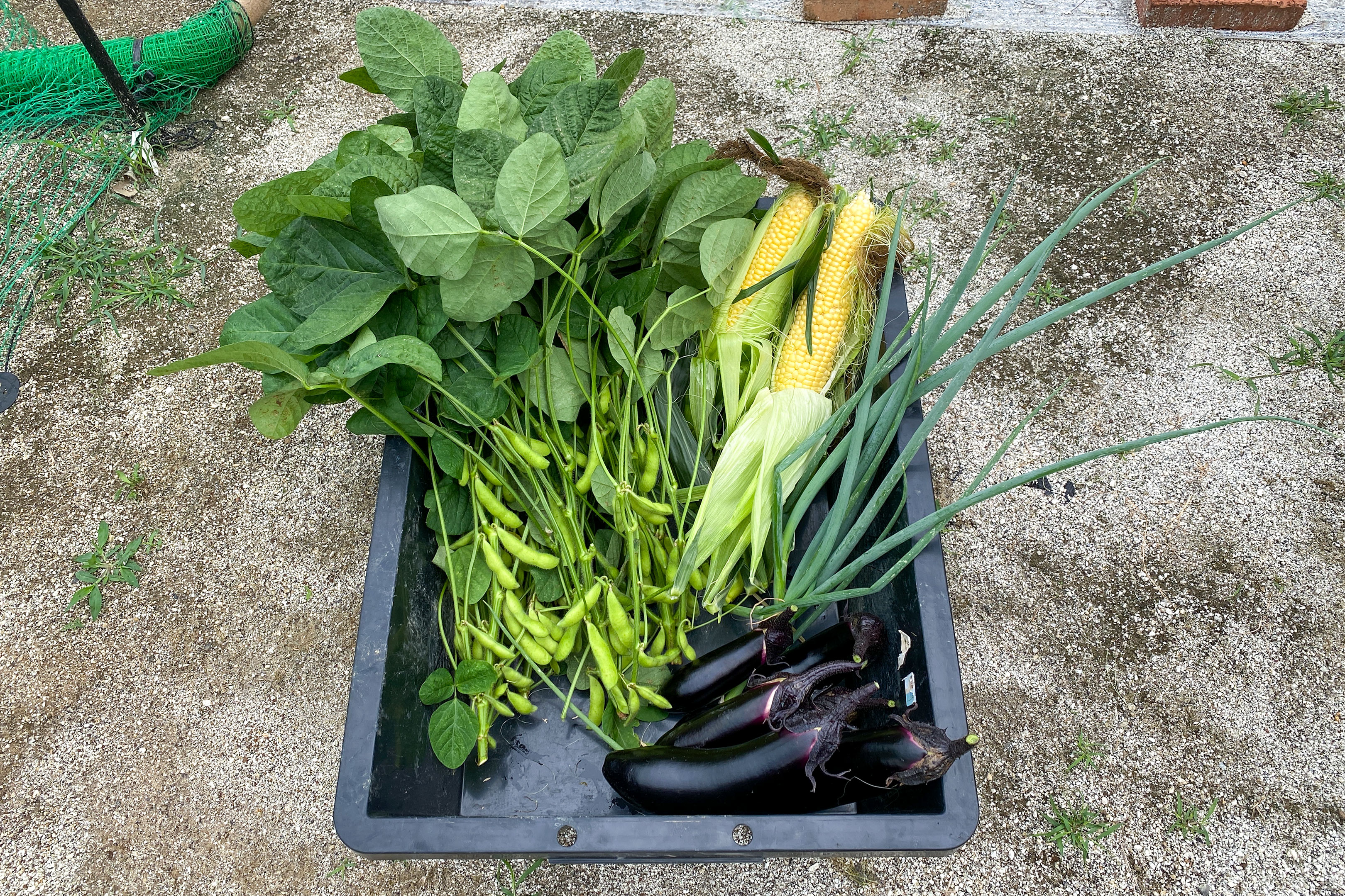 いよいよ我が家の菜園も夏野菜の収穫がピークを迎えています。といっても、春夏定番のトマトときゅうりは週末菜園では収穫が追いつかなくなるため我が家では作っておらず、今週来週くらいで一気に食べごろを迎えるのがトウモロコシとエダマメ。