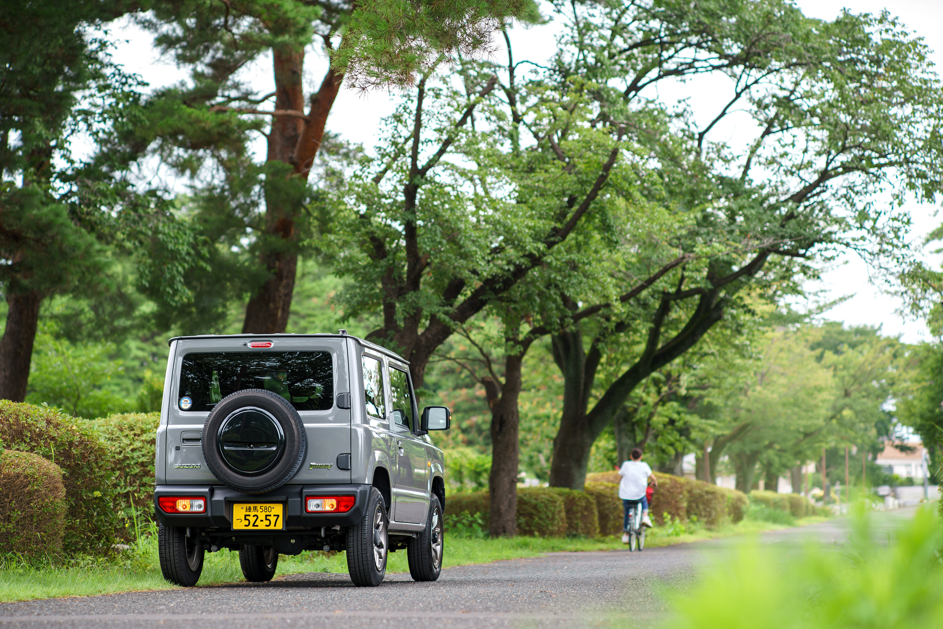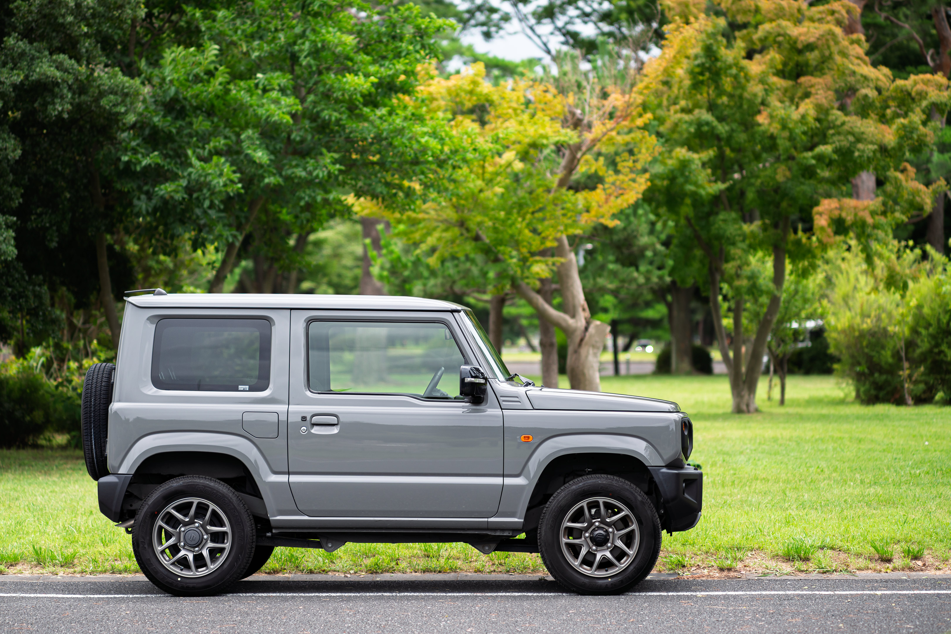 ミディアムグレーというこのボディカラー、私が今のベージュカラーのジムニーを購入する際、最後まで悩んだ色であり、街を走っているこの色を見るとなんともミリタリーでカッコ良いと今も思います。それがこんな形で数週間マイカーのように乗れるなんてなんてラッキーな。