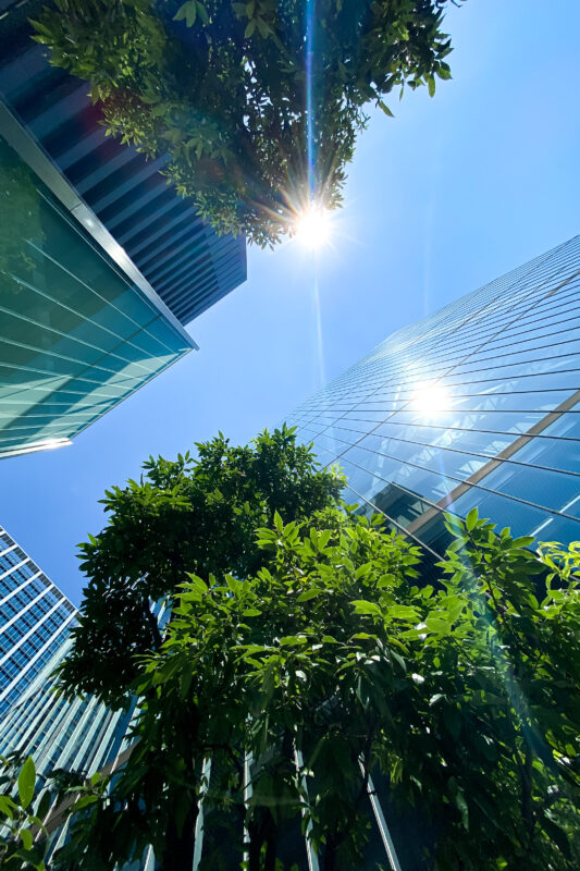 暑さというのは体感的には湿度が大きく影響するので、単純に気温だけでは判断しづらいところがあるものの、都会の場合には巨大なビル群に囲まれているせいで太陽の光が反射し、太陽がまるで2つあるかのような環境が出来上がってしまっています。場所によっては太陽が3つ!なんて場所もあるのかも。