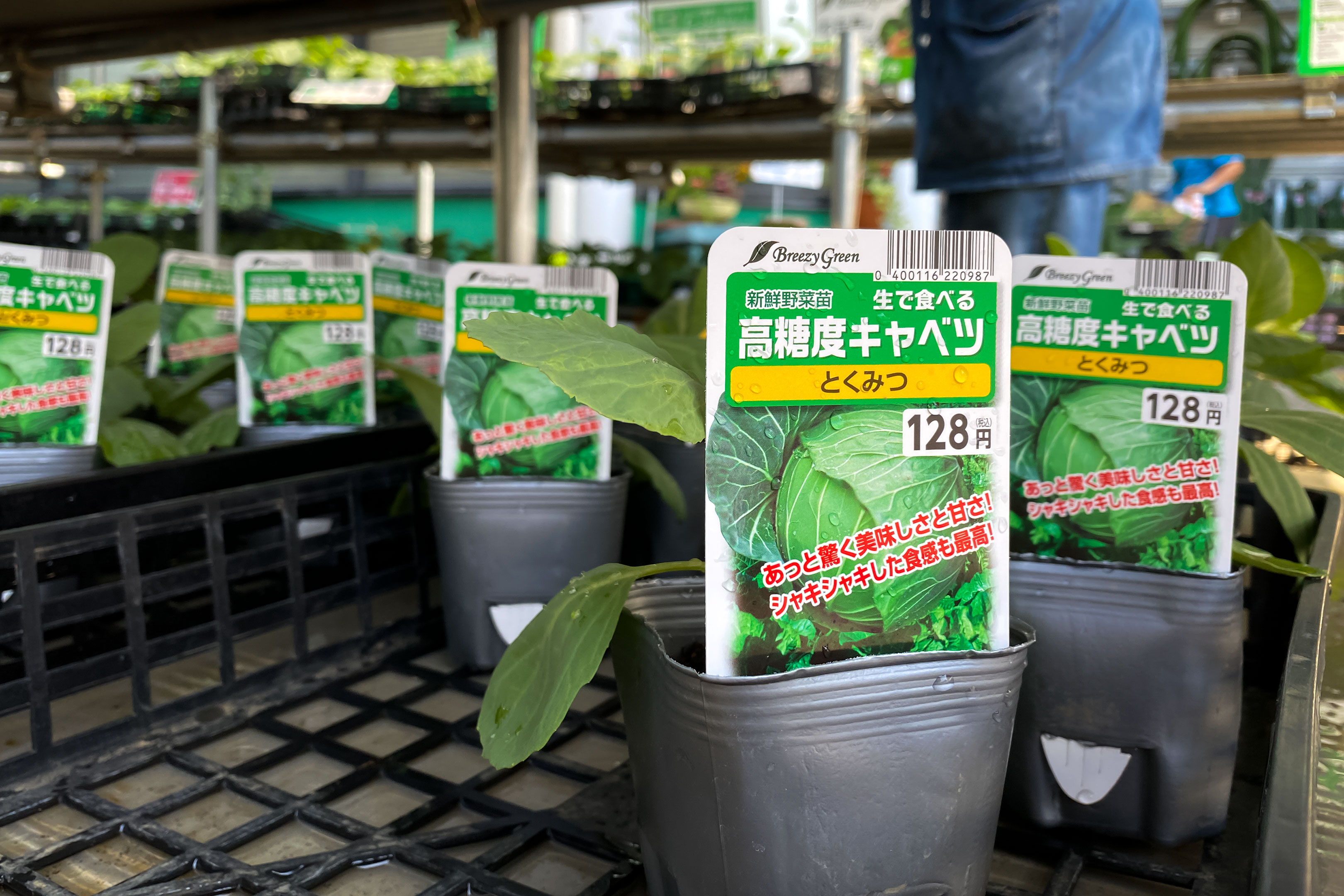 キャベツの苗は全6株を購入。”とくみつ” と呼ばれる高糖度キャベツ4株と ”彩風” という品種2株。
